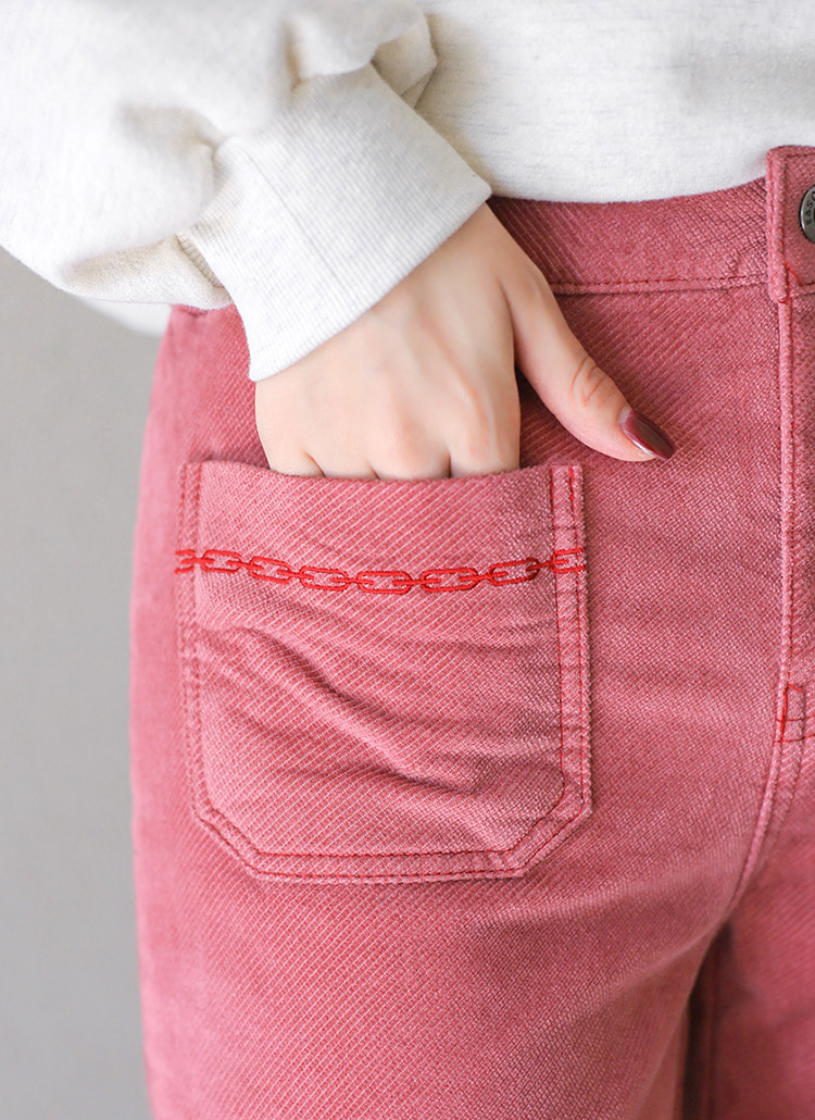자수 포켓 코듀로이 기모 세미와이드 팬츠예요 :)