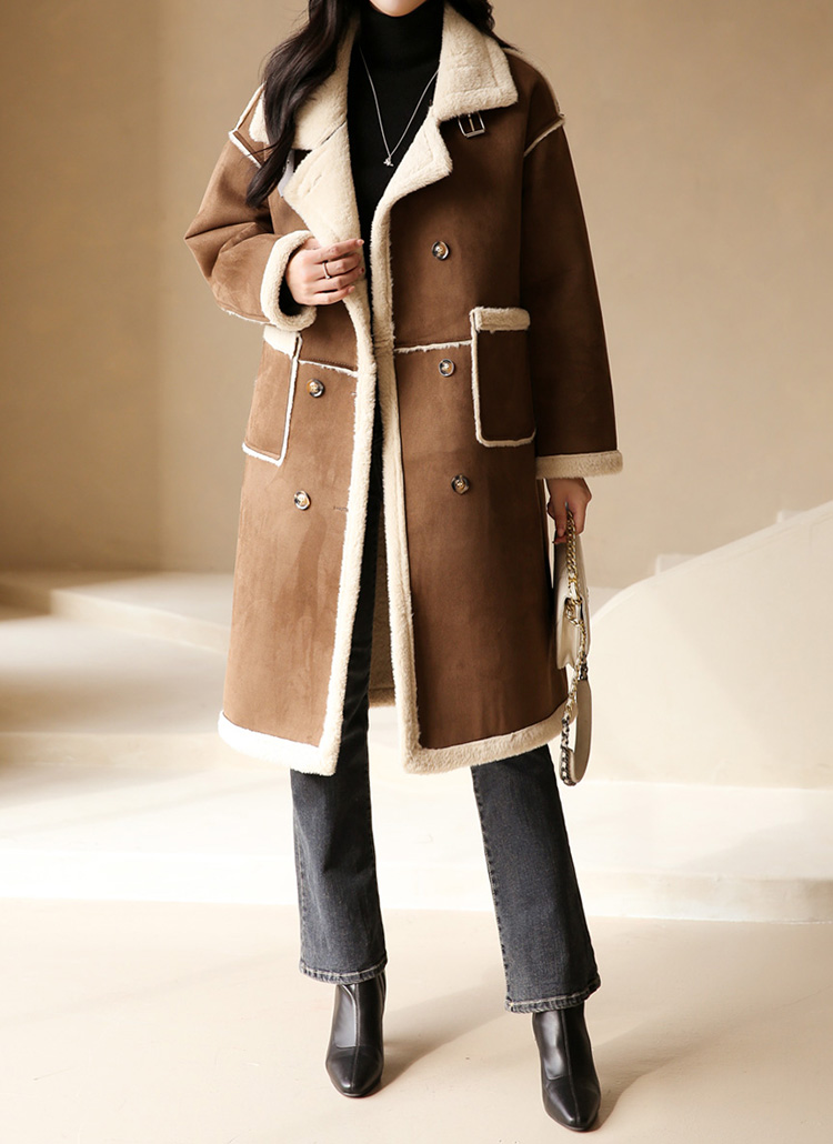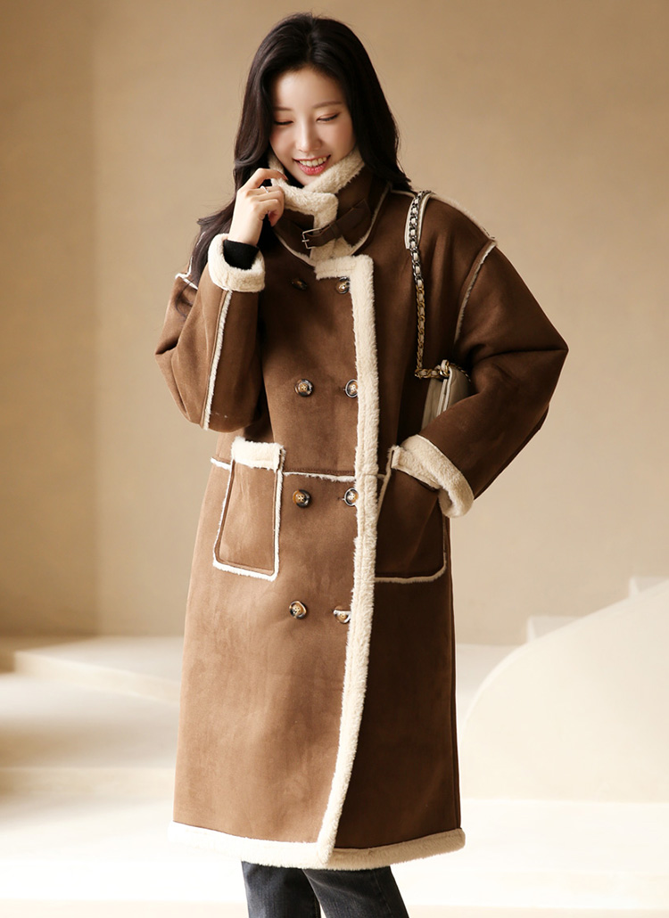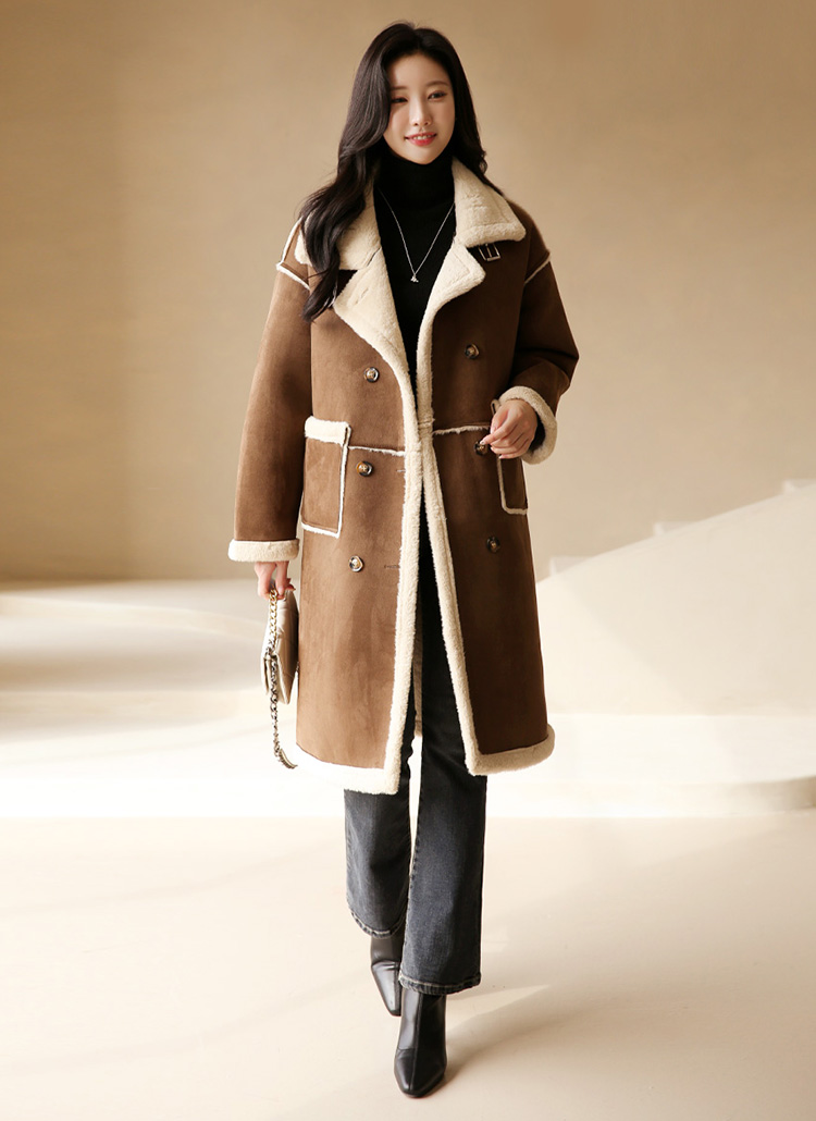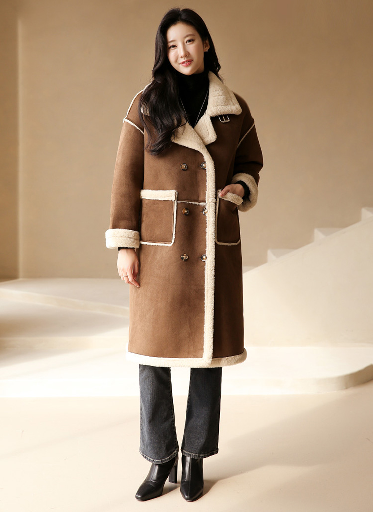 프디엘 포근 퍼 안감 하이넥 버클 무스탕 롱 자켓 코트