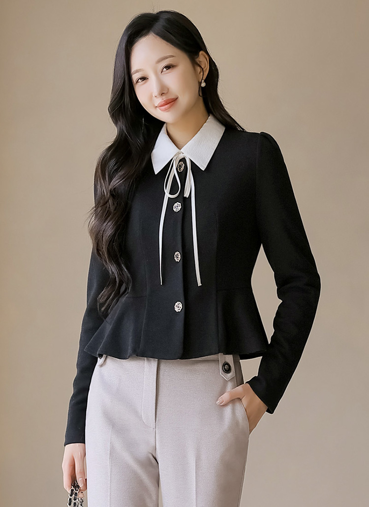 허리선을 잡아주는 페플럼 실루엣이 자연스럽게 체형을 보정해주며