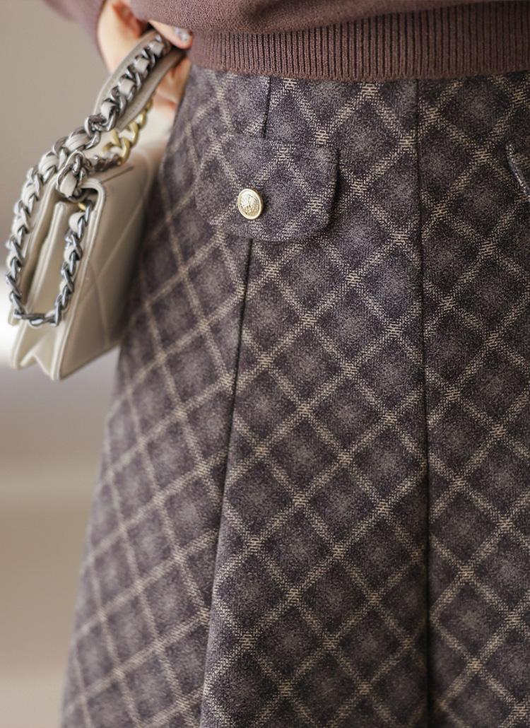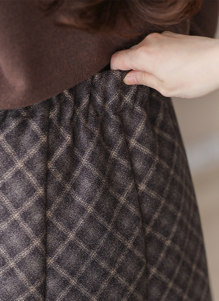 블리즈 타탄 체크 뒷밴딩 모직터치감 절개 A라인 플레어 롱 스커트