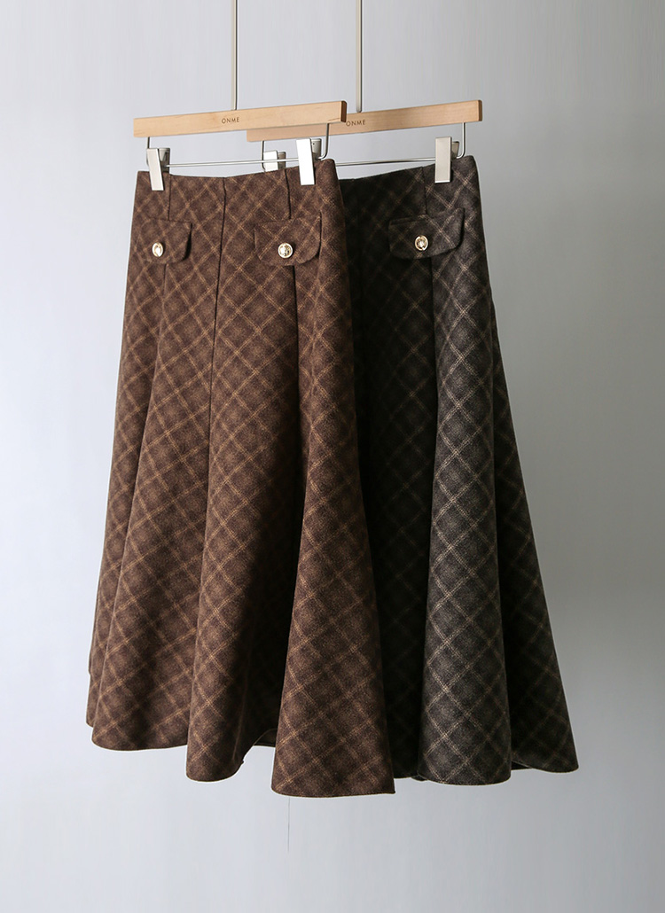 따뜻하고 세련된 감성의 타탄 체크 플레어 롱 스커트에요