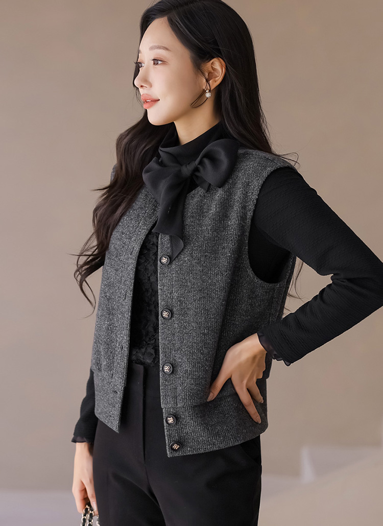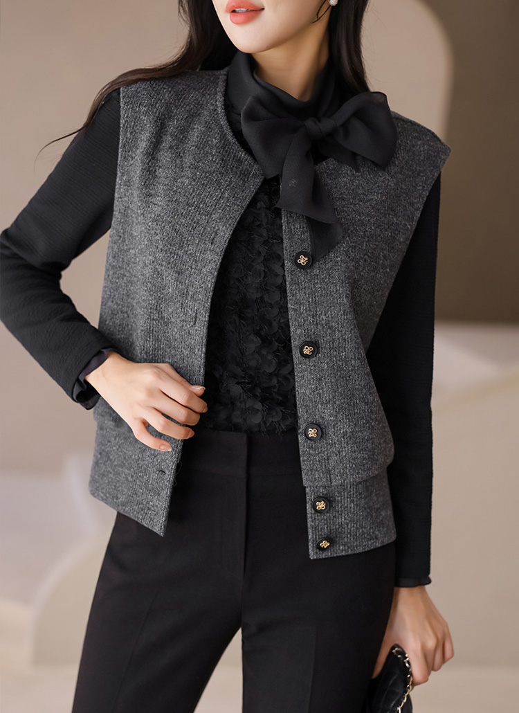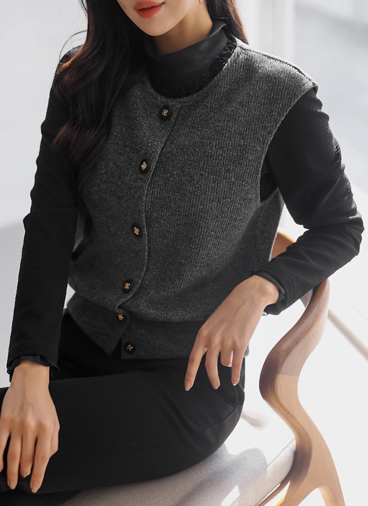 [LouisAngel] 레모디 톡톡 골지 포근 보카시 니트 버튼 블루종 조끼 베스트