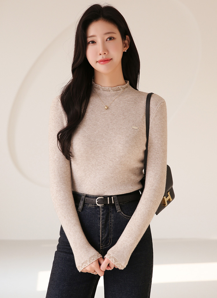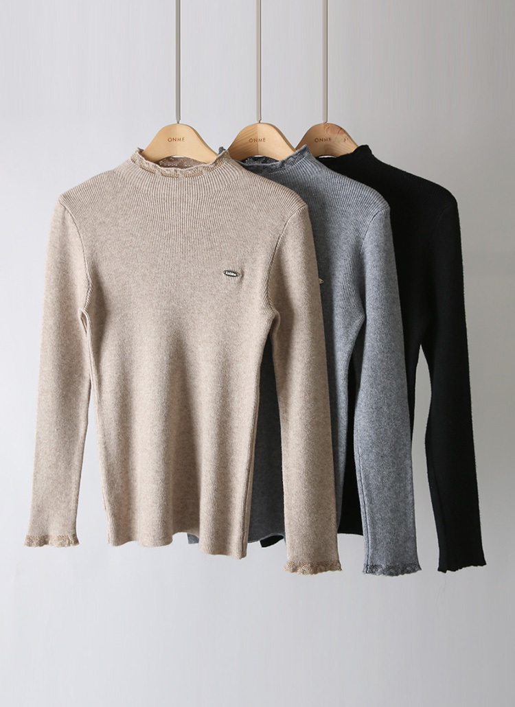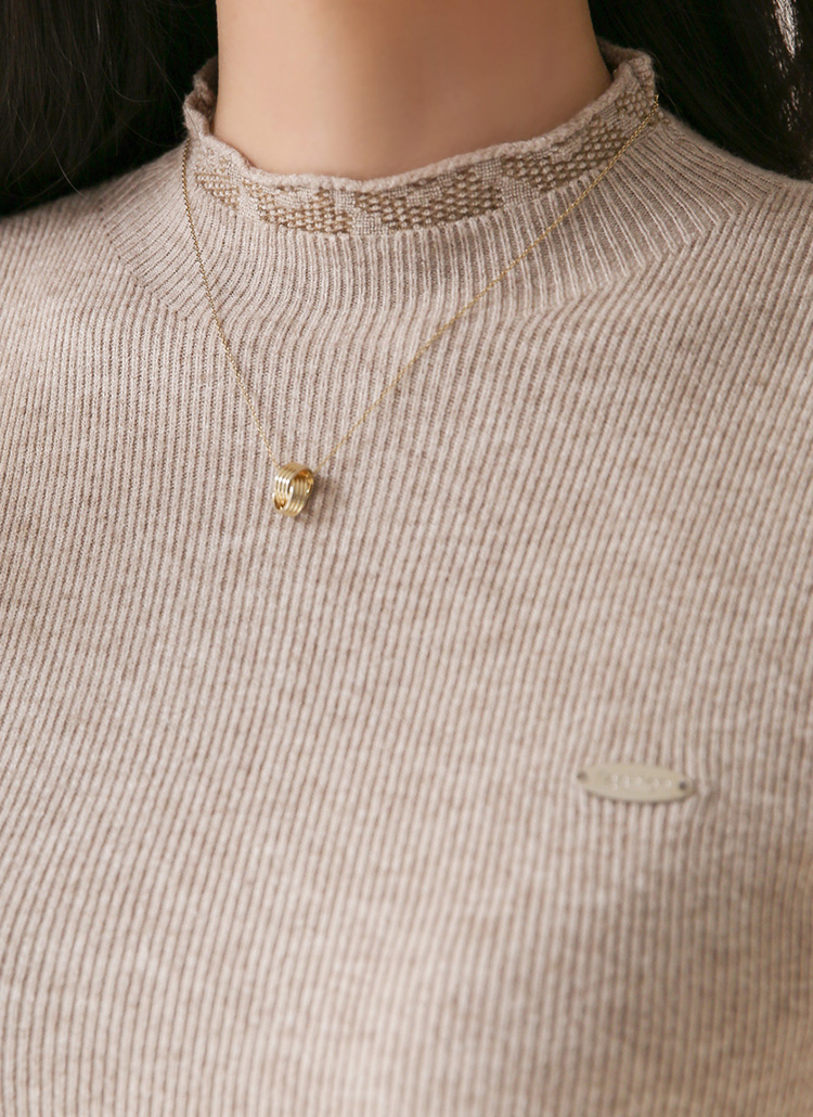 브레블 팬던트 쟈가드 포인트 슬림핏 골지 반목 니트