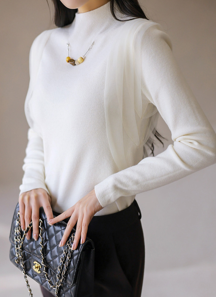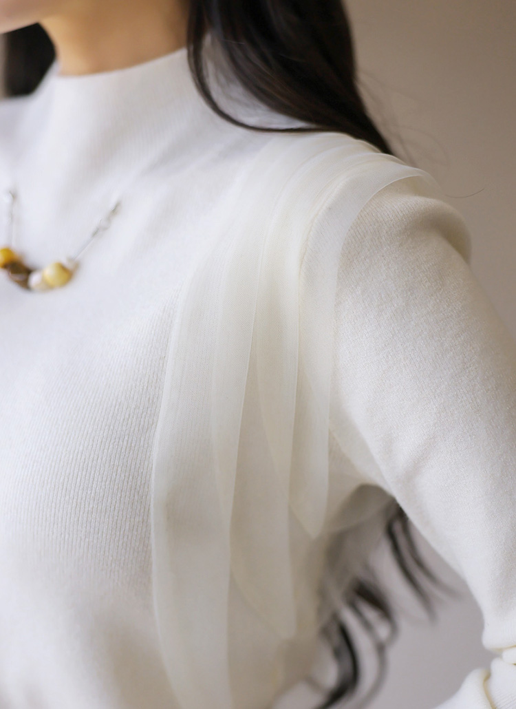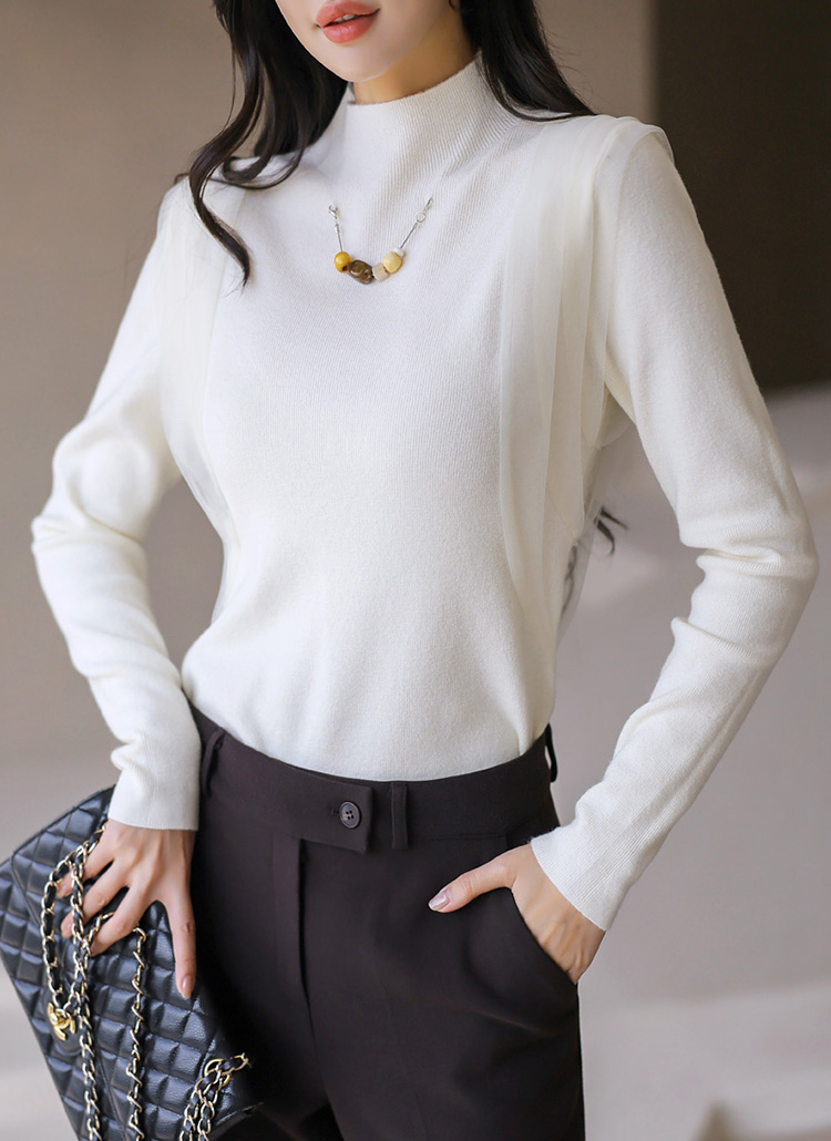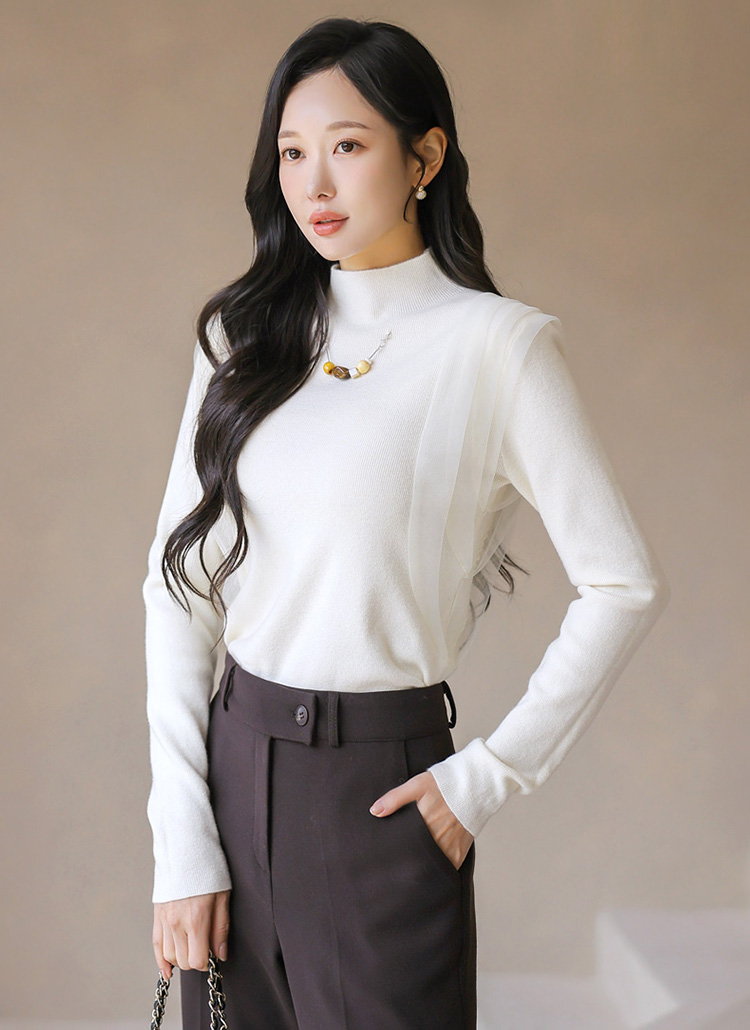 반하이넥 슬림 실루엣에 사랑스러운 디테일을 더한 니트에요