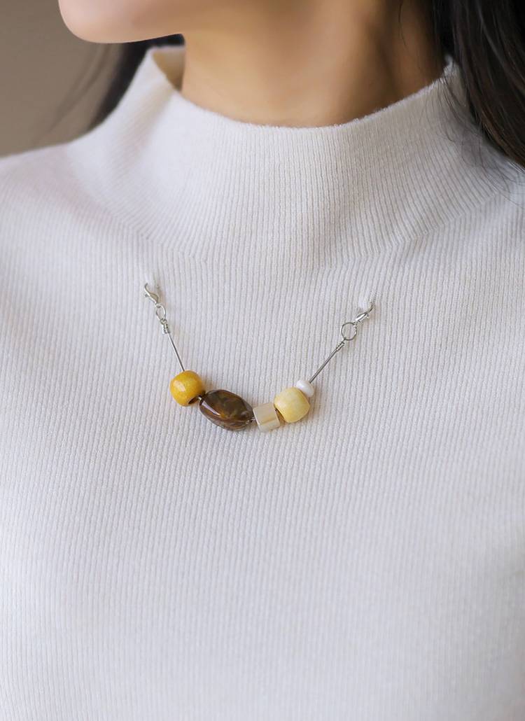 마이어 샤레이스 레이어드 숄더 비즈라인SET 반하이넥 골지 니트