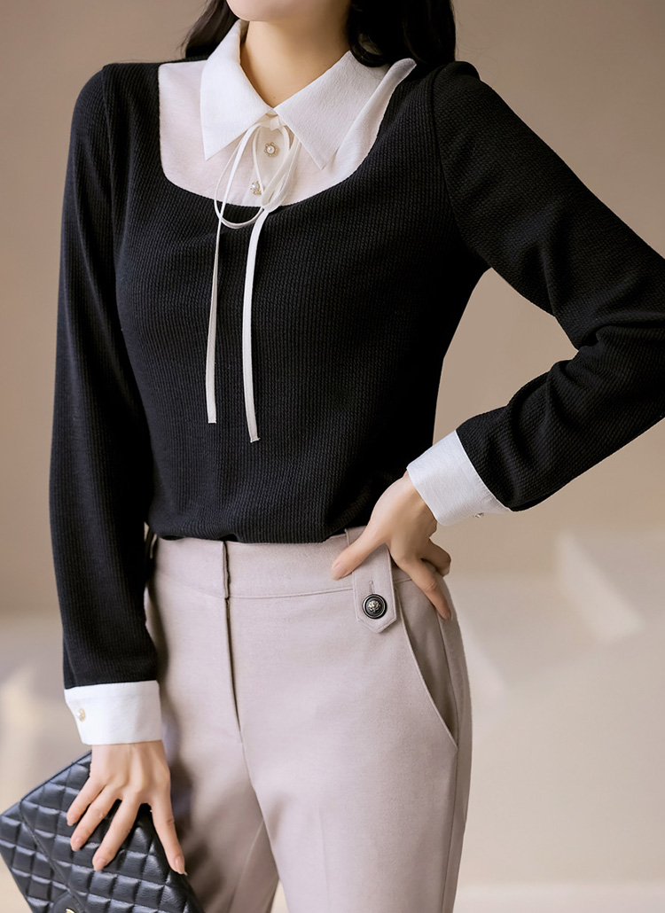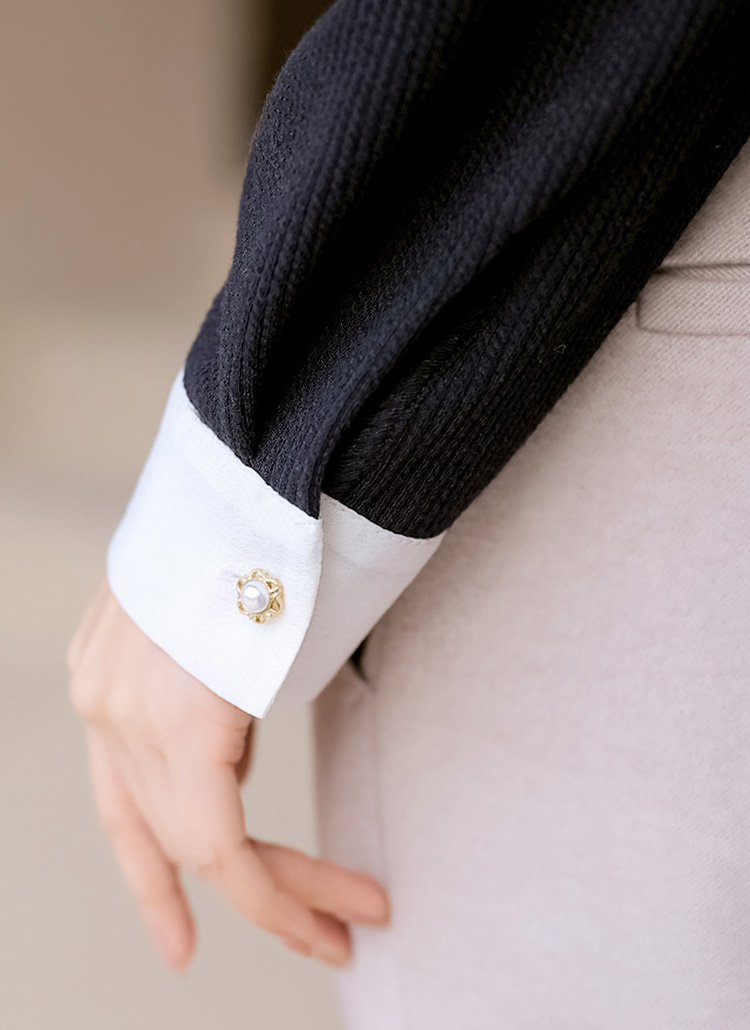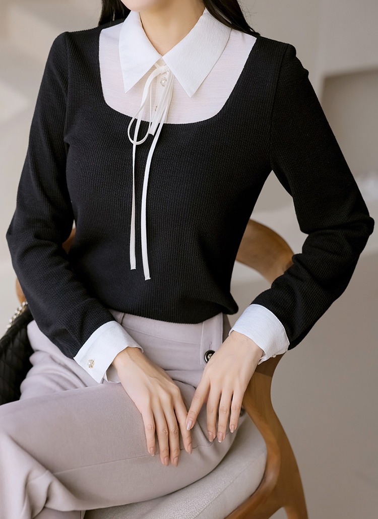 블라우스와 니트탑을 매치한 듯한 감각적인 디자인으로