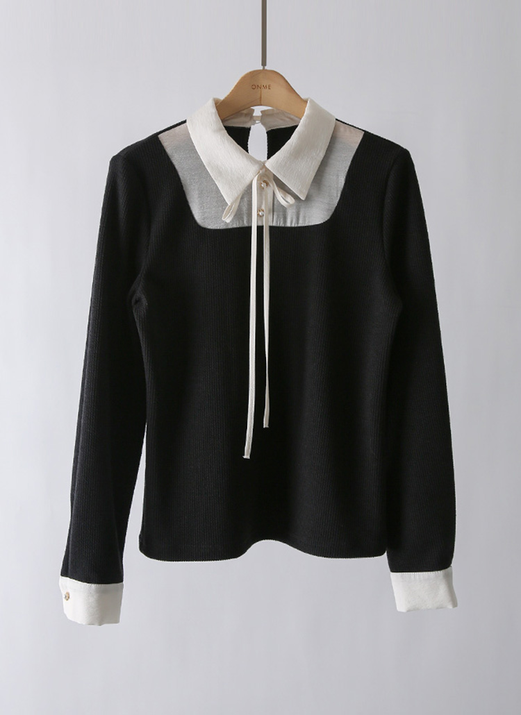 [LouisAngel] 로이지 스퀘어 배색 톡톡 골지 카라 블라우스 티