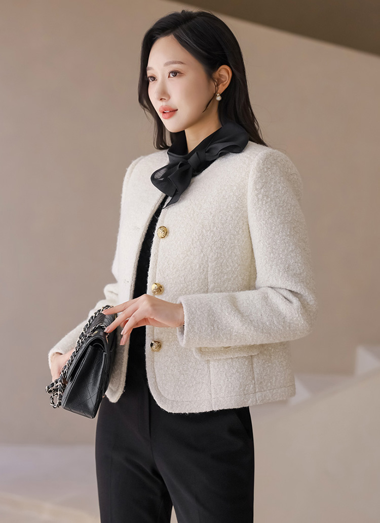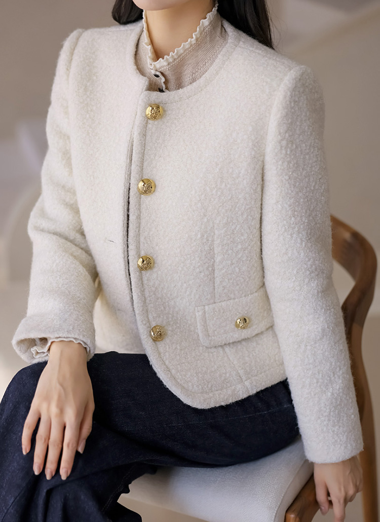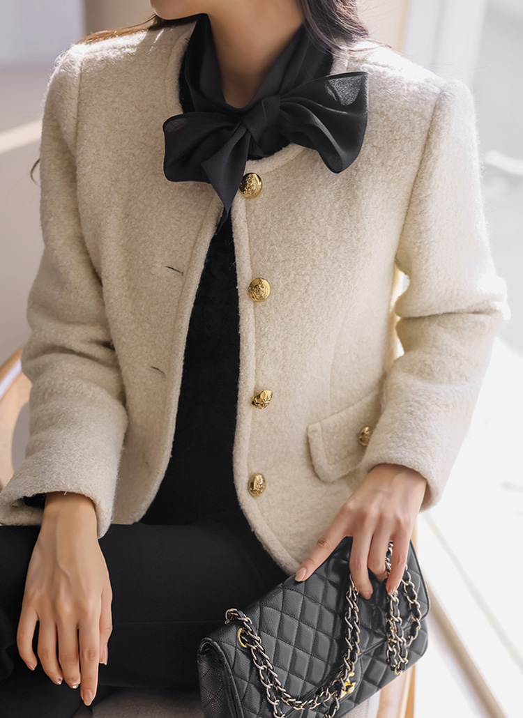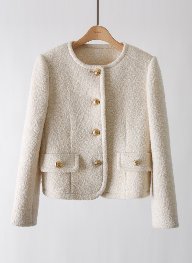 [LouisAngel] 헤인느 골드 펄 울 블렌딩 포근 부클 노카라 자켓