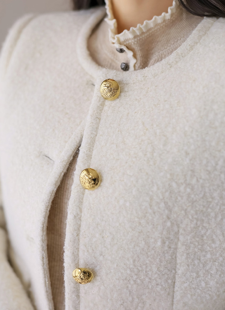 [LouisAngel] 헤인느 골드 펄 울 블렌딩 포근 부클 노카라 자켓