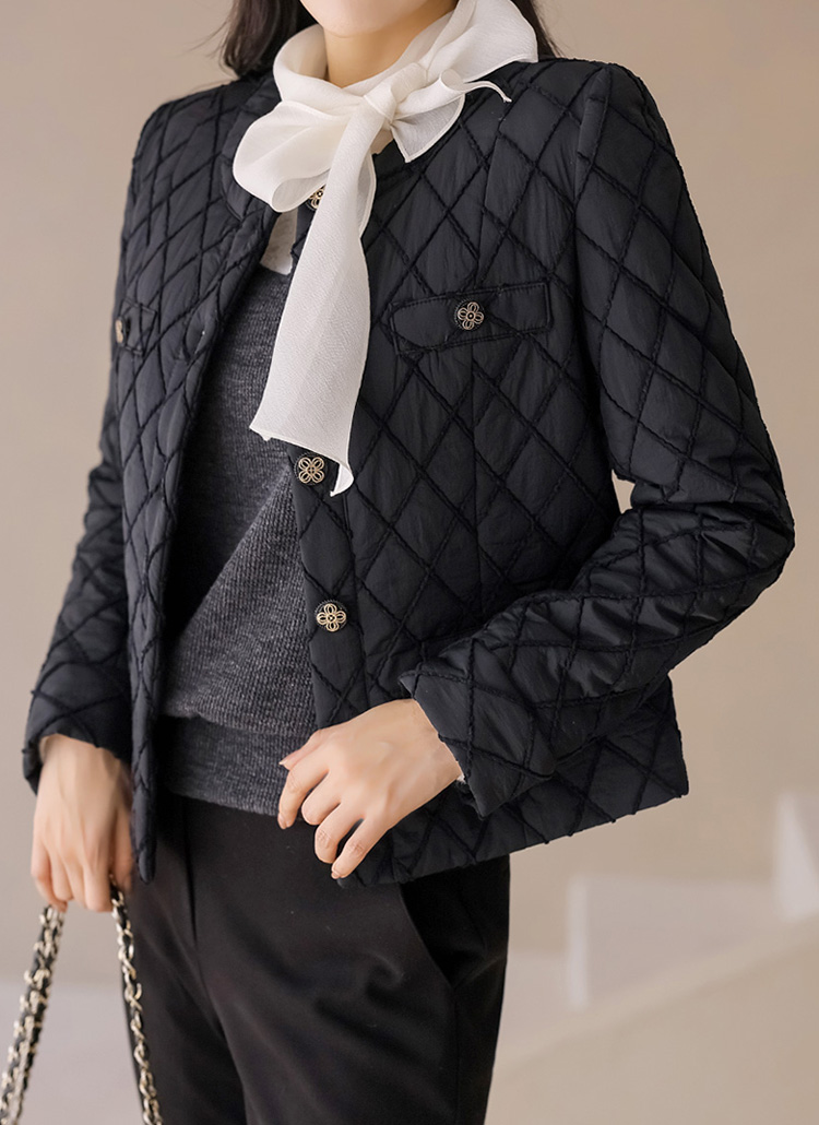 가벼운 따뜻함, 우아한 고급스러움을 동시에 선사하는 자수 퀄팅 자켓이에요