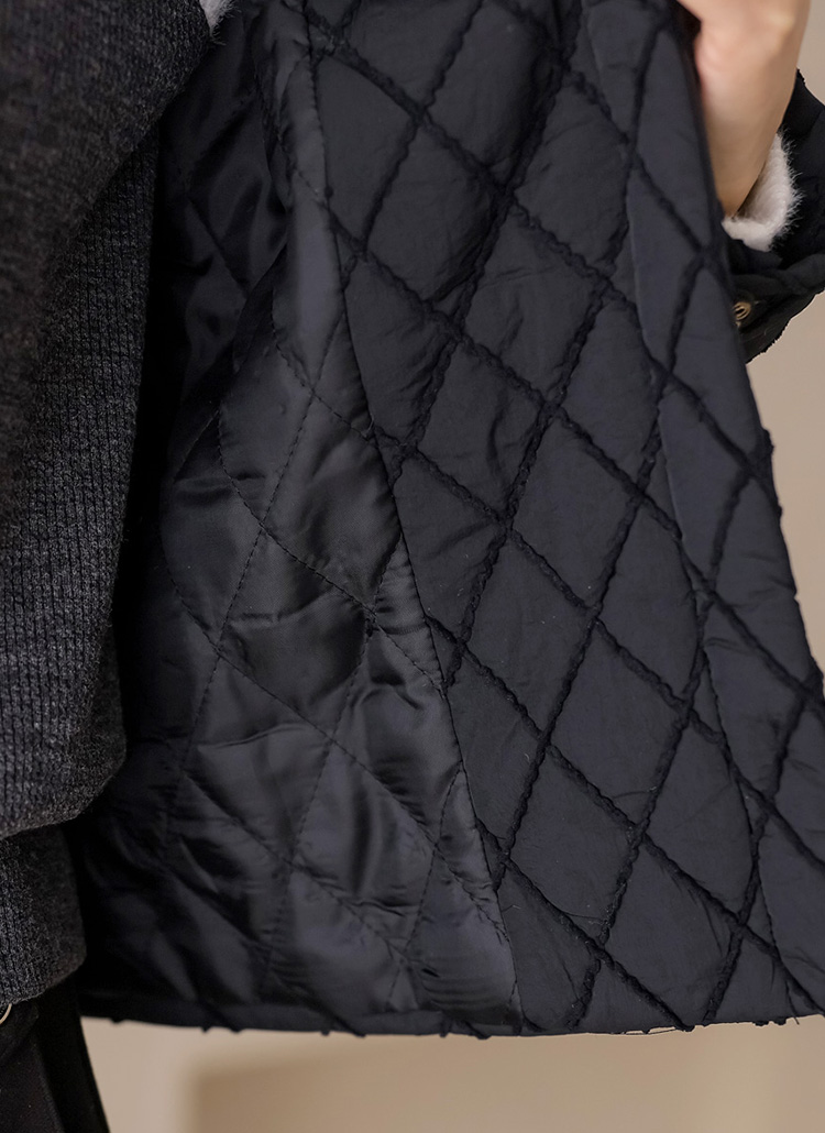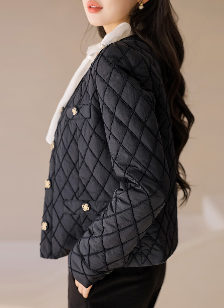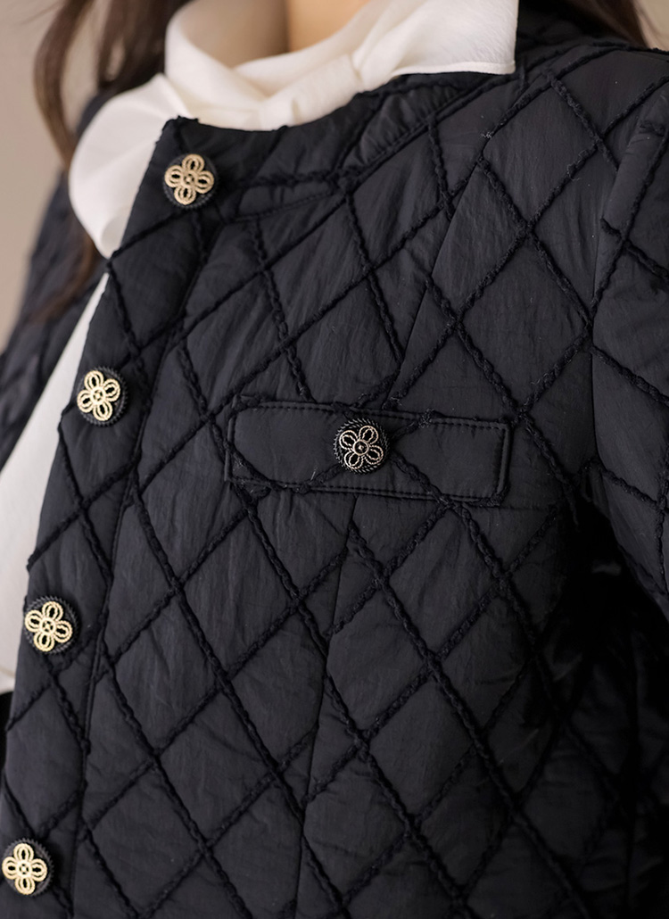 세딘느 다이아 자수 퀄팅 클로버 버튼 누빔 안감 노카라 자켓