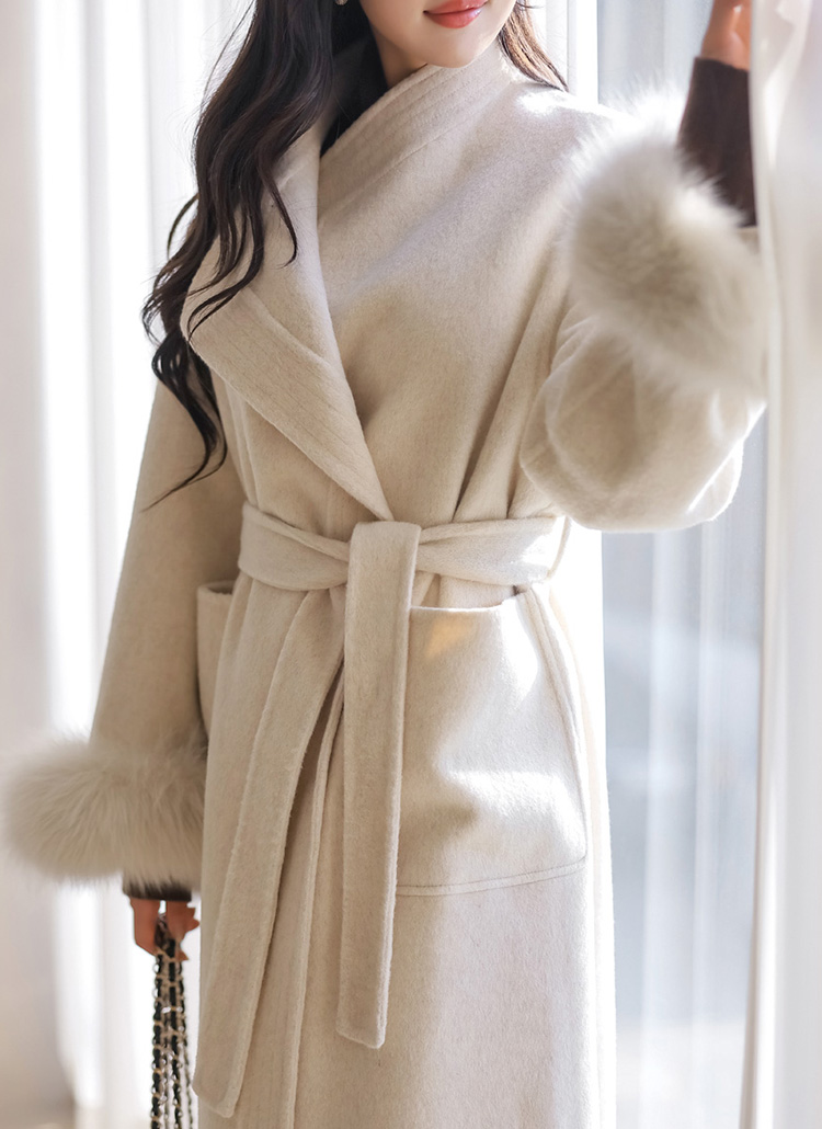셀리즈 폭스퍼 트리밍 스티치 라인 벨트SET 핸드메이드 드레시 롱 코트