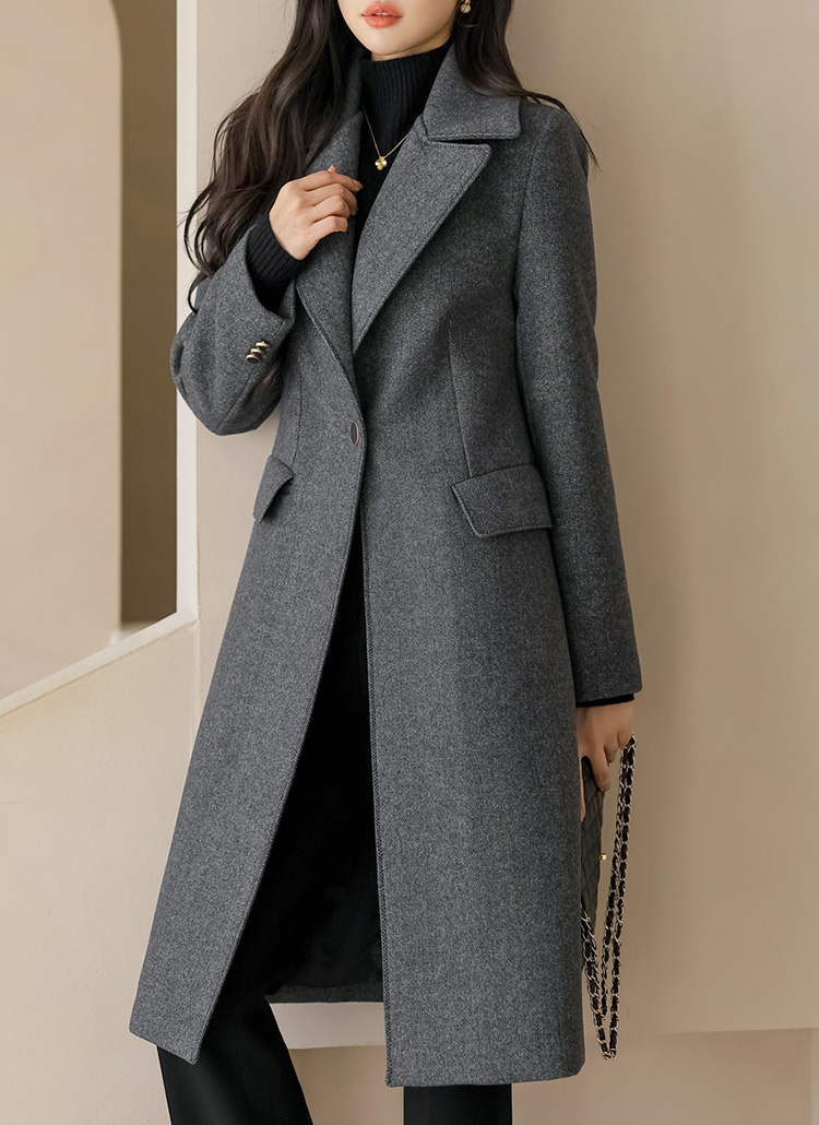 클래프 울 블렌딩 모직 헤링본 완벽 슬림라인 테일러드 롱 코트