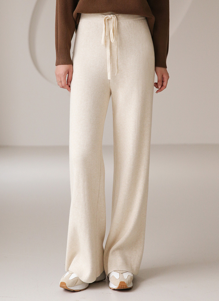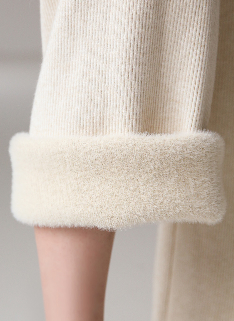 시에로 밍크 퍼 안감 골지 니트 와이드 밴딩 팬츠