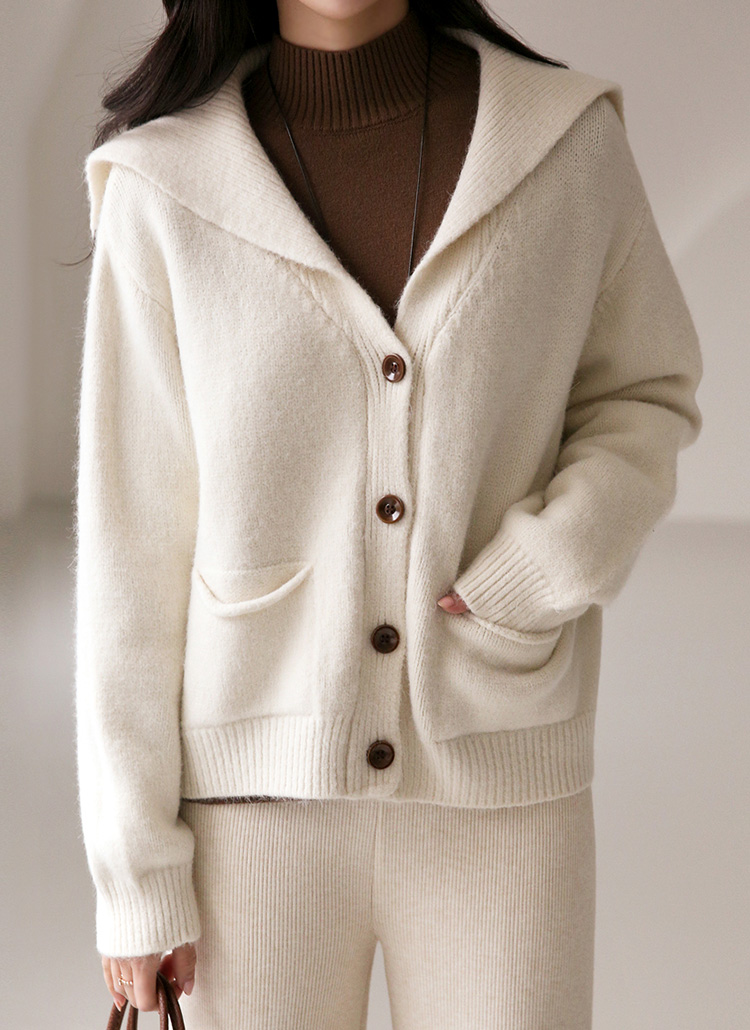 뮤레아 세일러카라 루즈핏 포근 니트 가디건