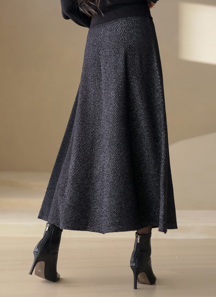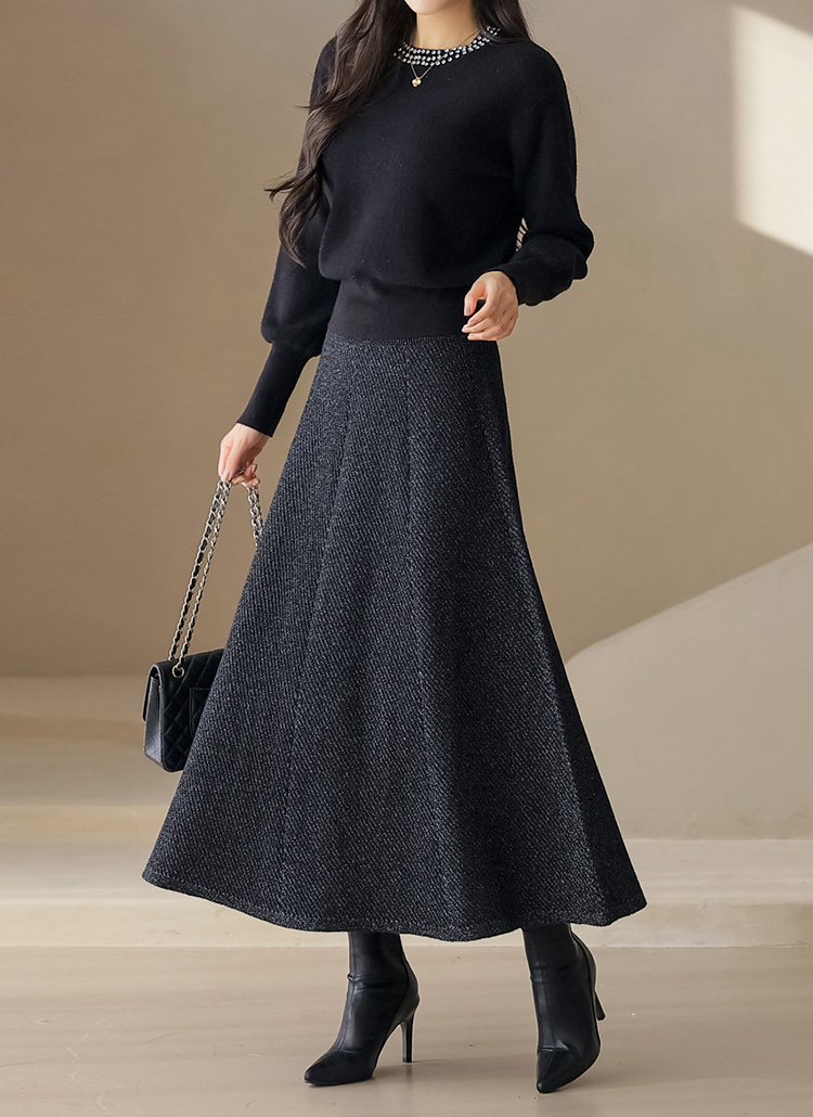 유즈린 샤인 펄 믹스 A라인 플레어 드레시 롱 니트 스커트