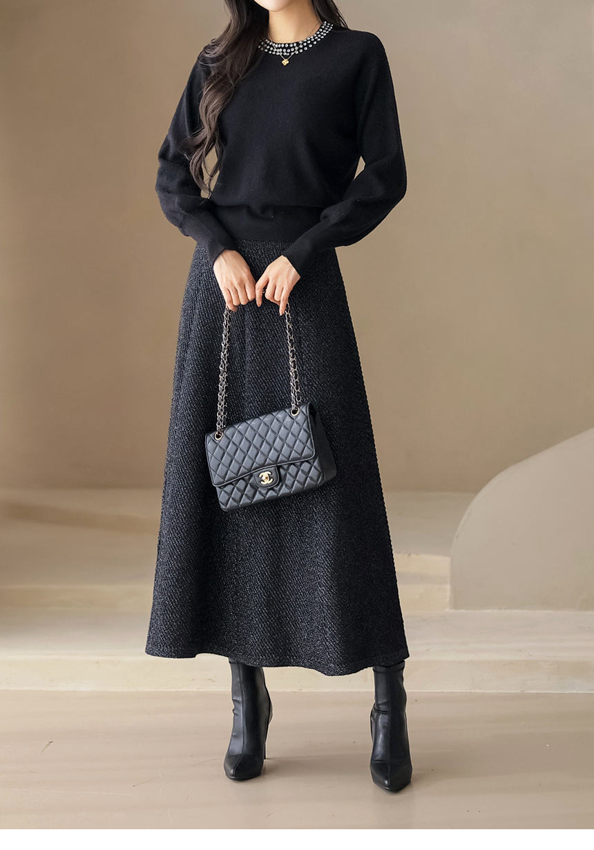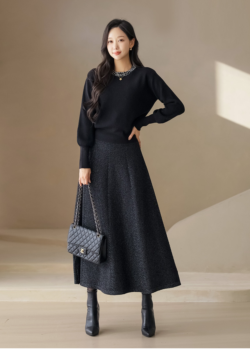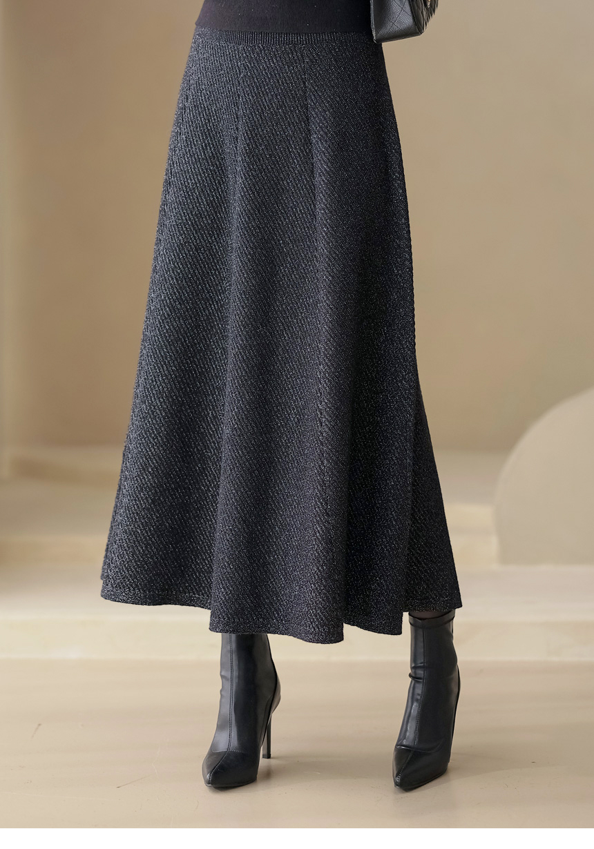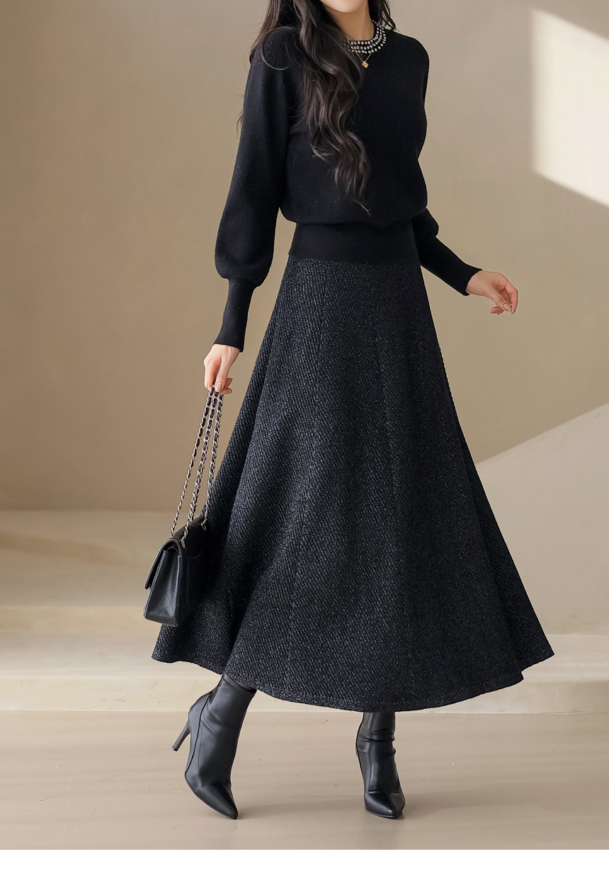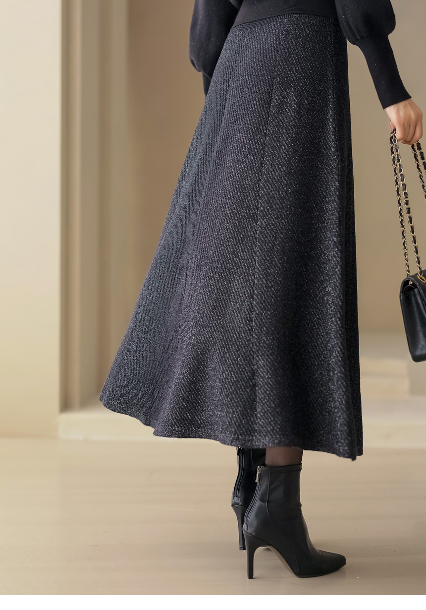 유즈린 샤인 펄 믹스 A라인 플레어 드레시 롱 니트 스커트