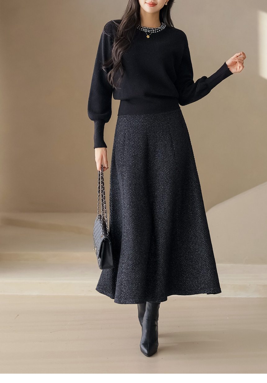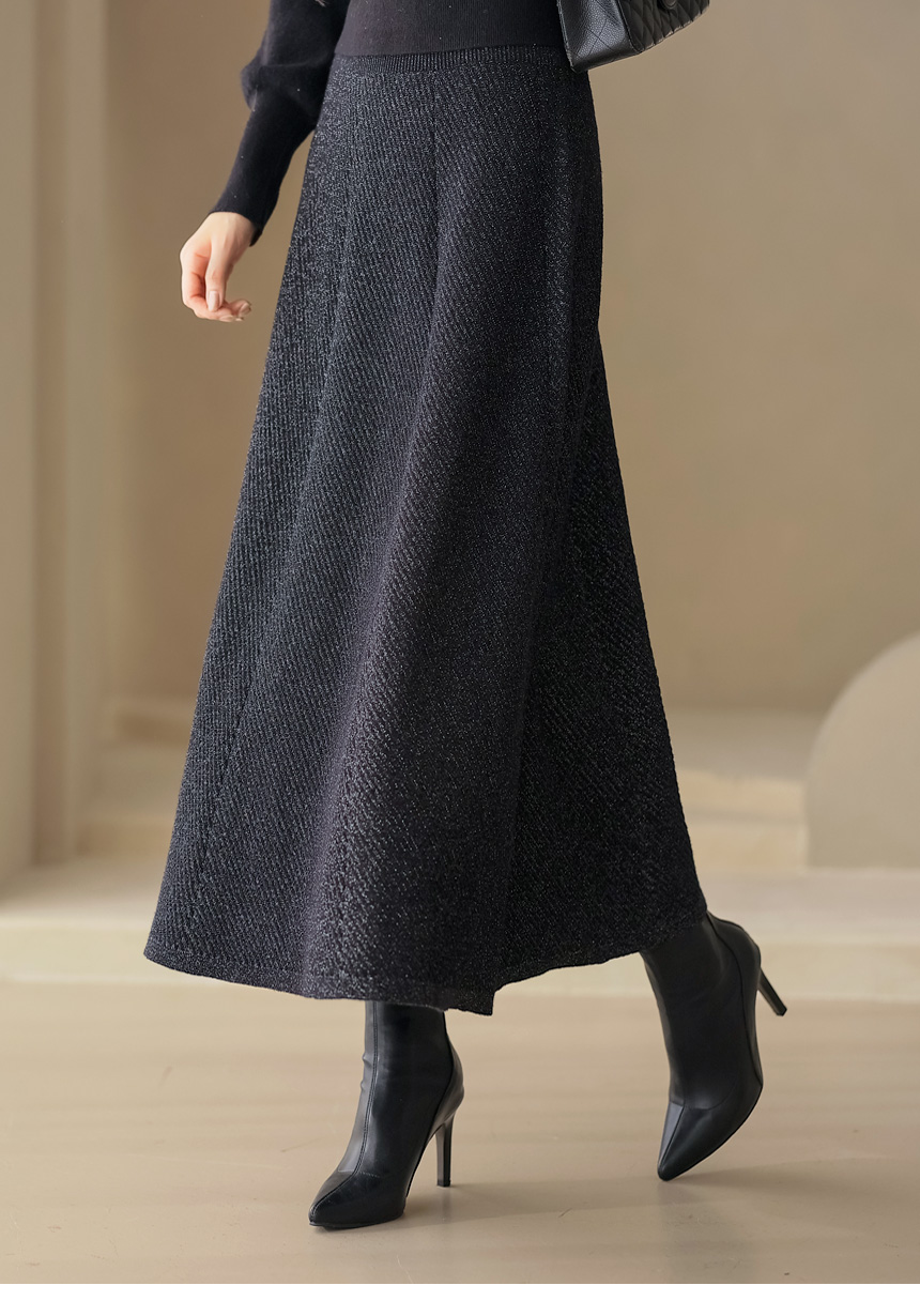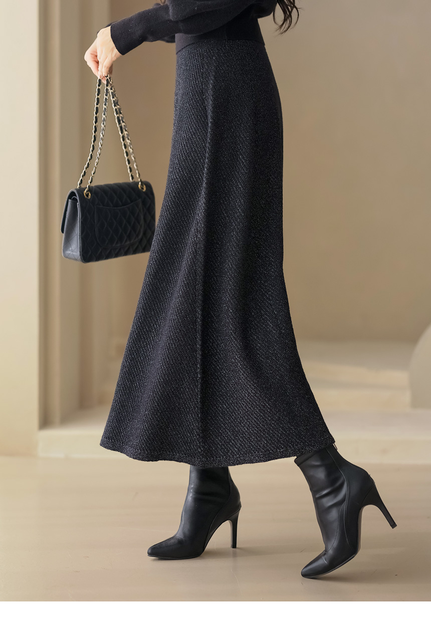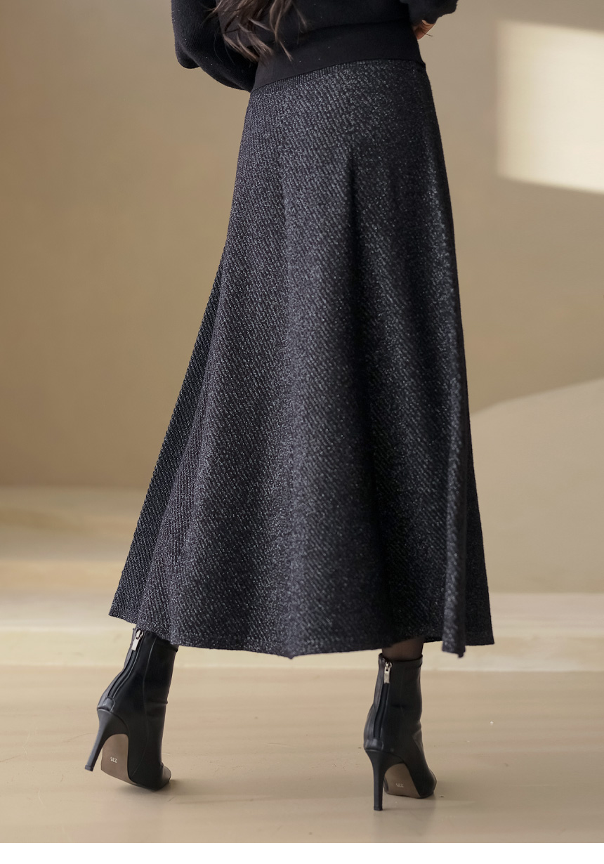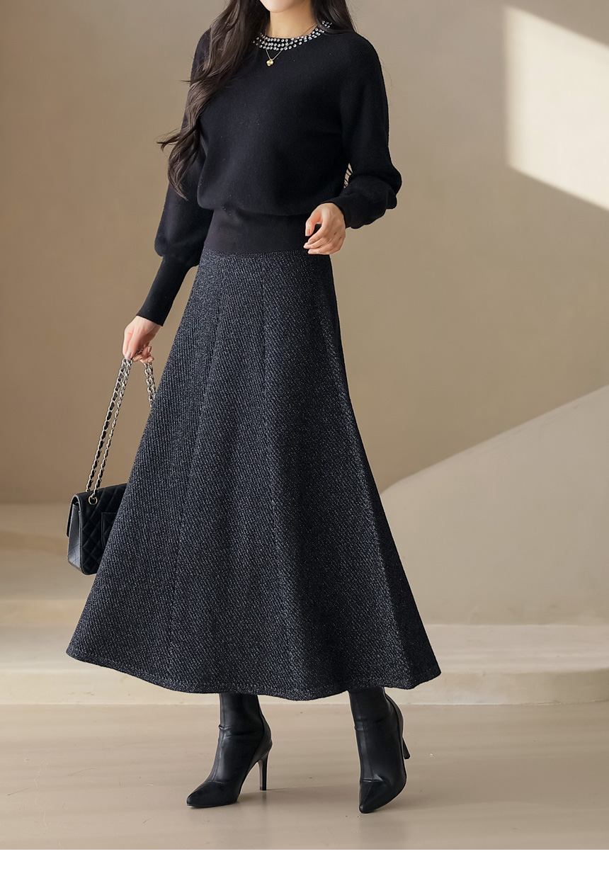 유즈린 샤인 펄 믹스 A라인 플레어 드레시 롱 니트 스커트