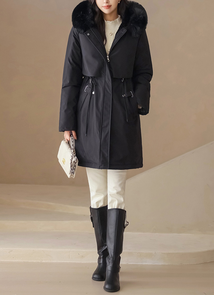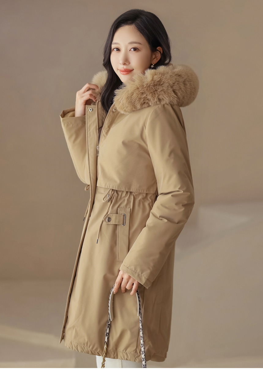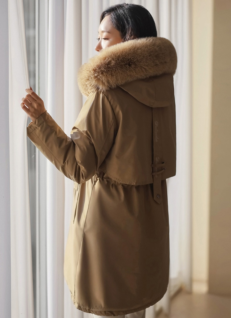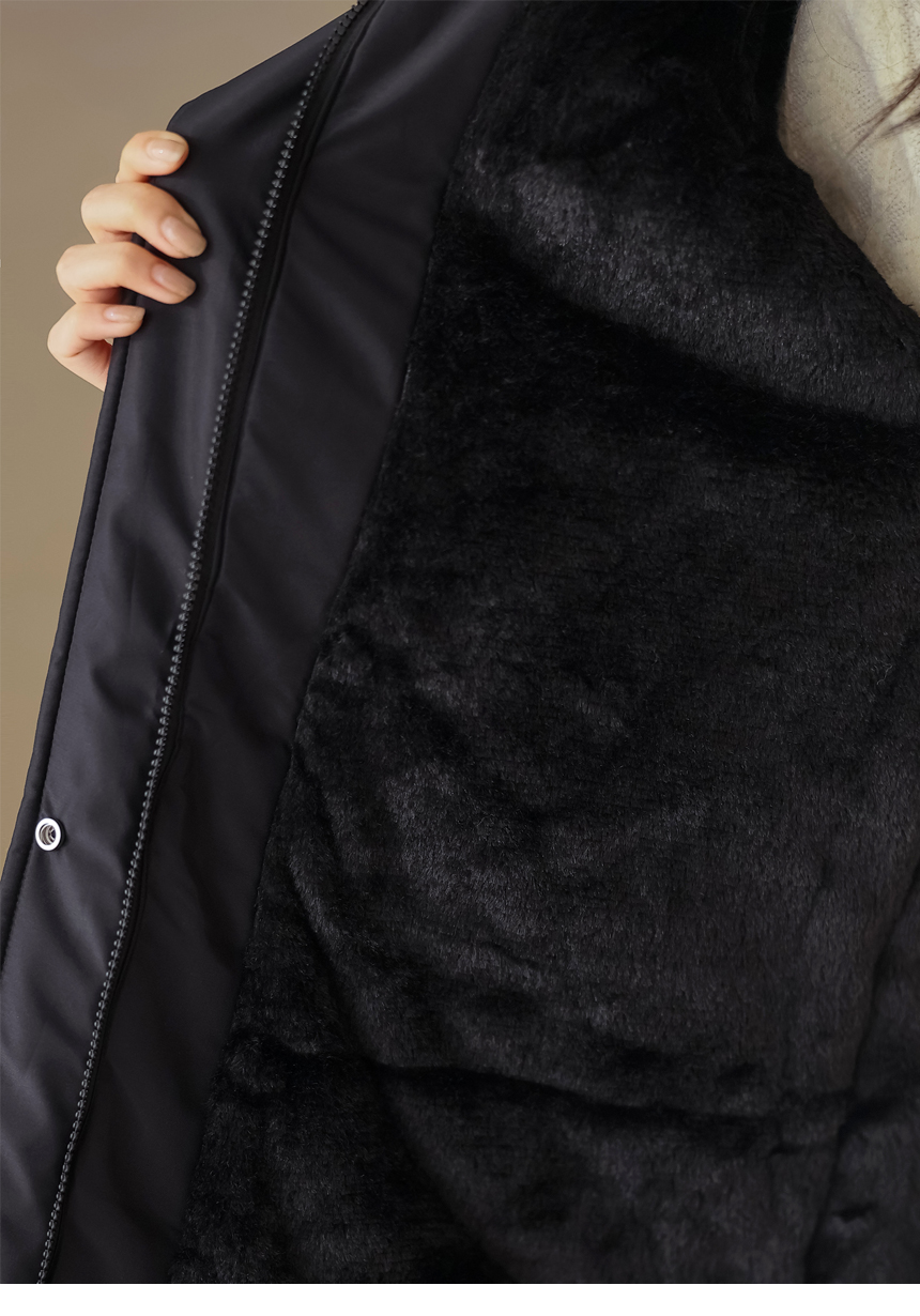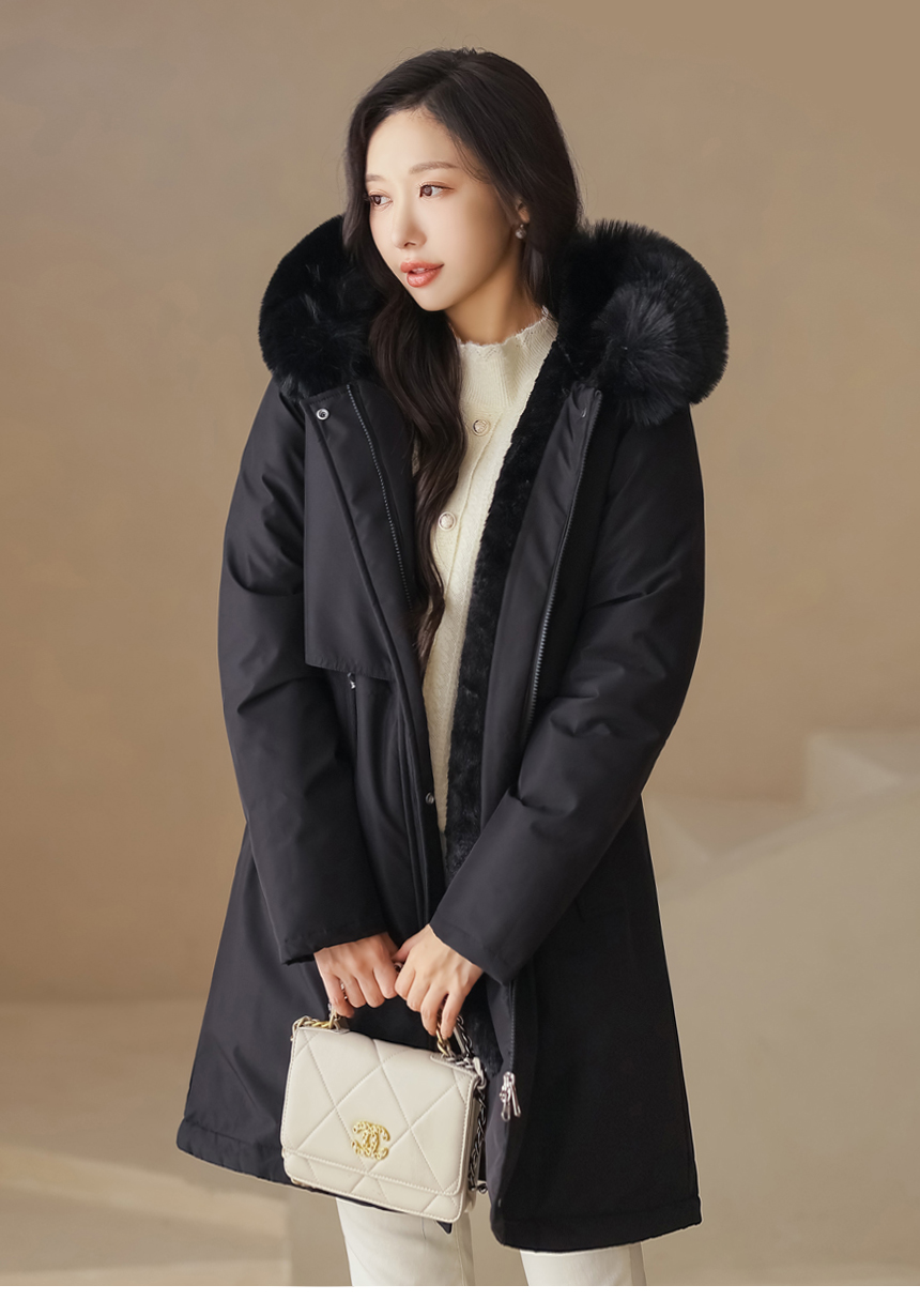 베비도 포근 퍼 안감 허리 스트링 미드 하프 후드 패딩 점퍼