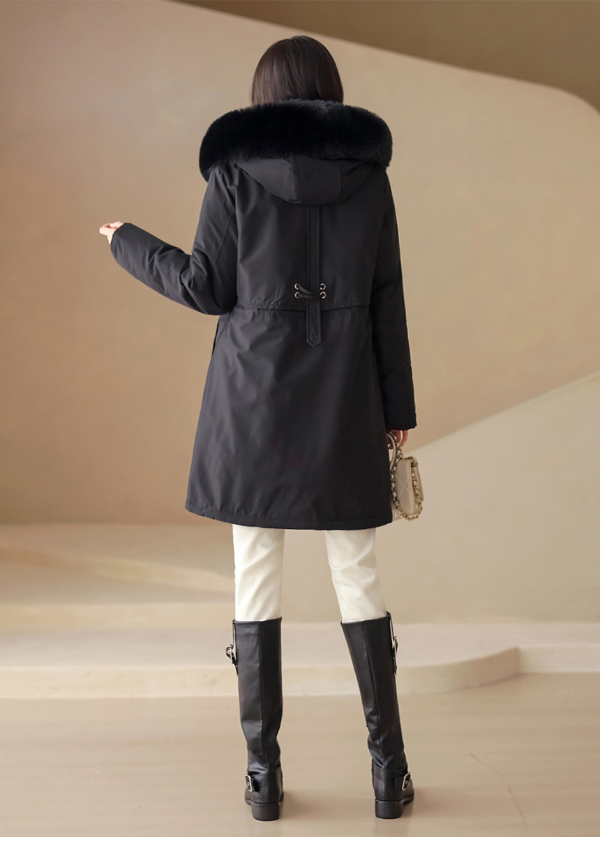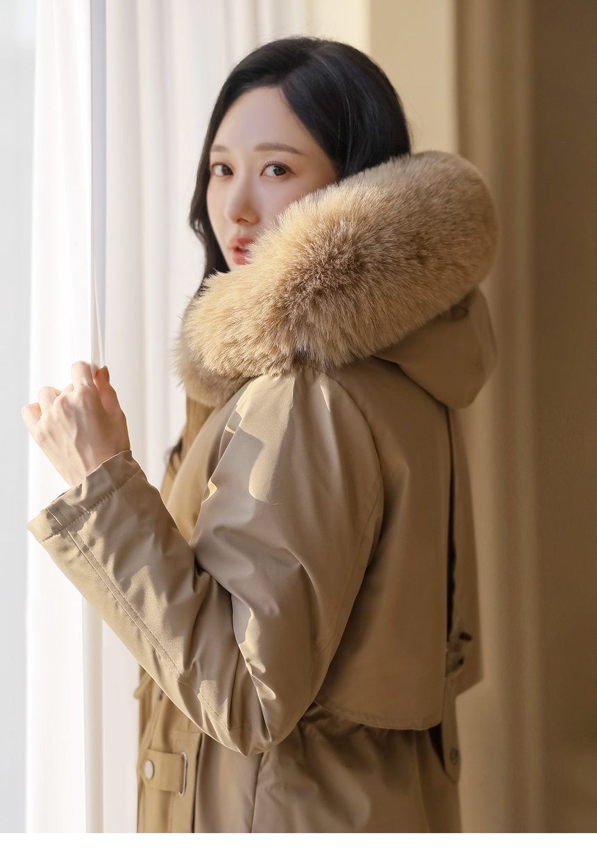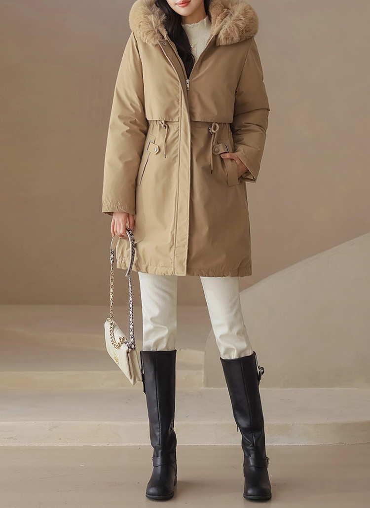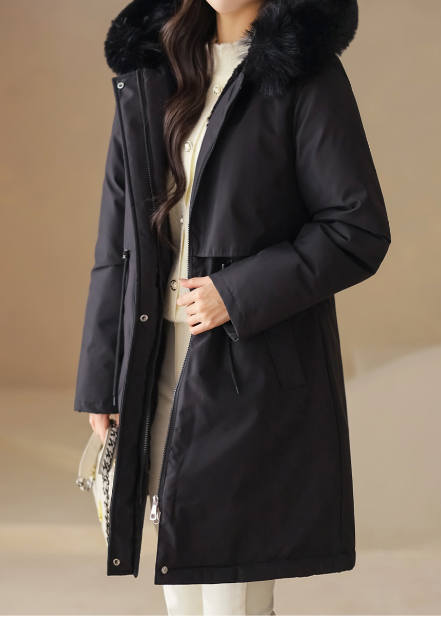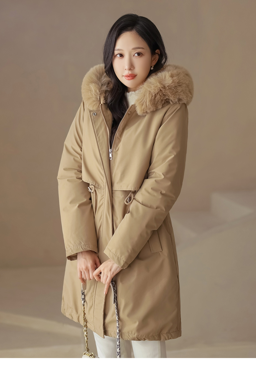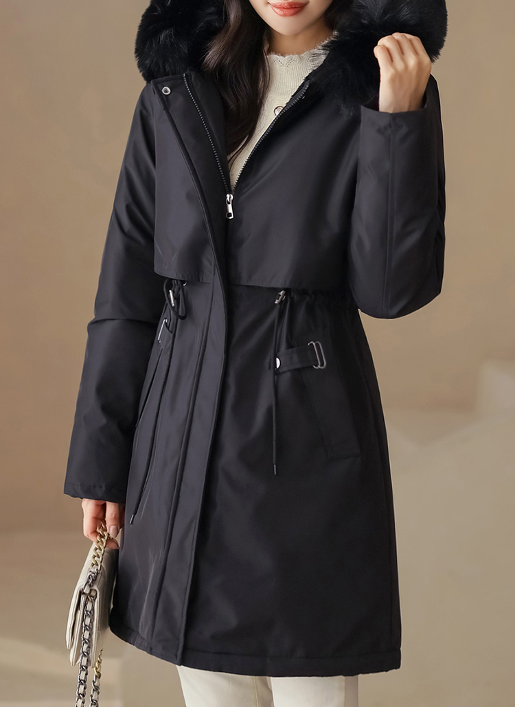 베비도 포근 퍼 안감 허리 스트링 미드 하프 후드 패딩 점퍼