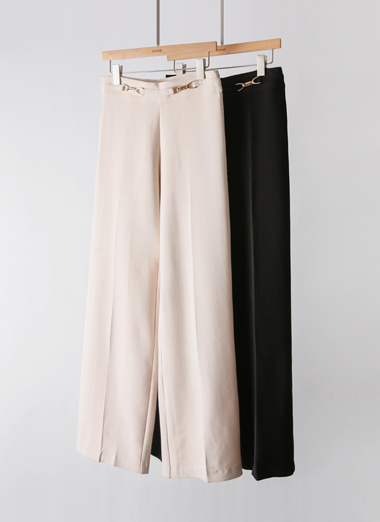 엘르간 럭스 금장 체인 디테일 일자 세미 와이드 슬랙스