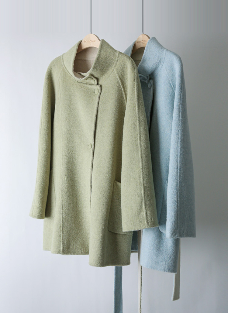 소프트한 파스텔 톤이 돋보이는 울 하프 코트예요 :)
