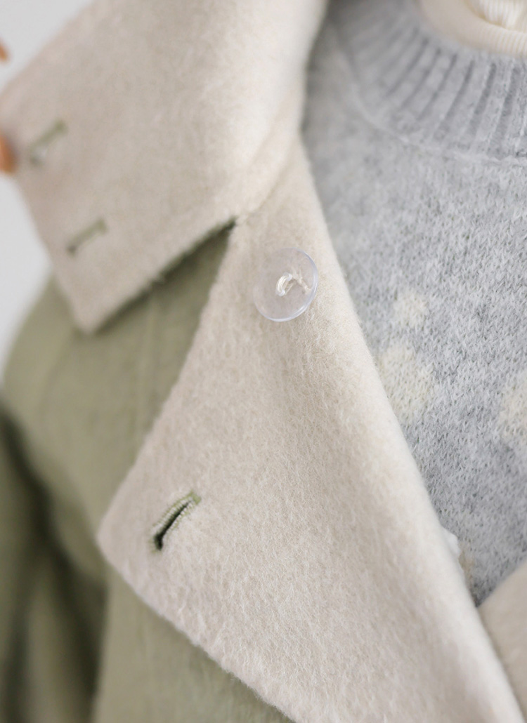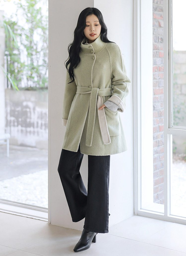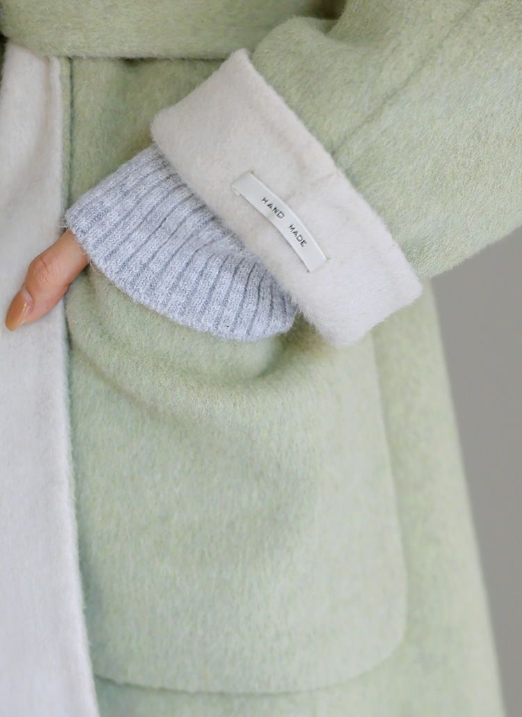 [Theonme] 소프트무드 울70 배색 하이넥 핸드메이드 하프 코트