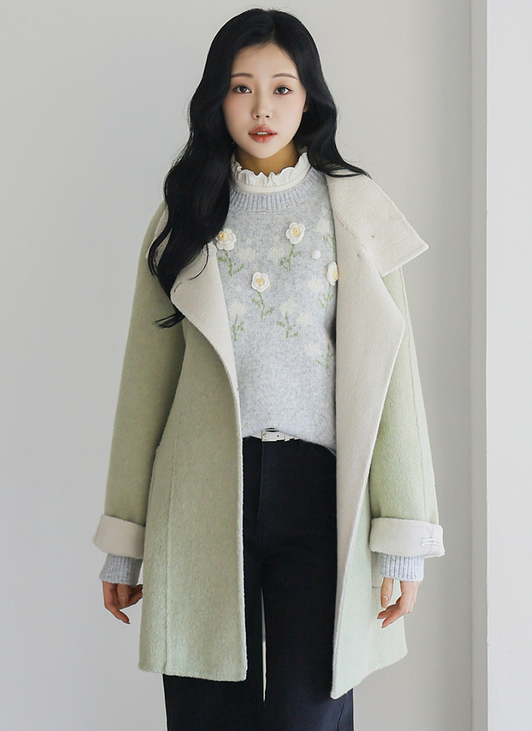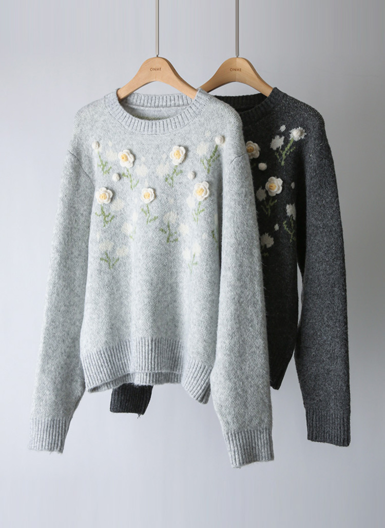 [Theonme] 몽글 플라워 입체 코사지 러블리 패턴 라운드 니트
