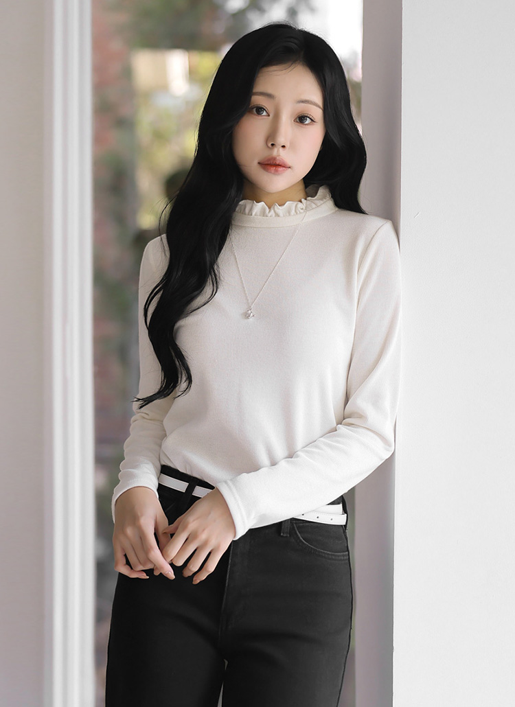 [Theonme] 마블로 러블리 프릴넥 기모안감 블라우스 티