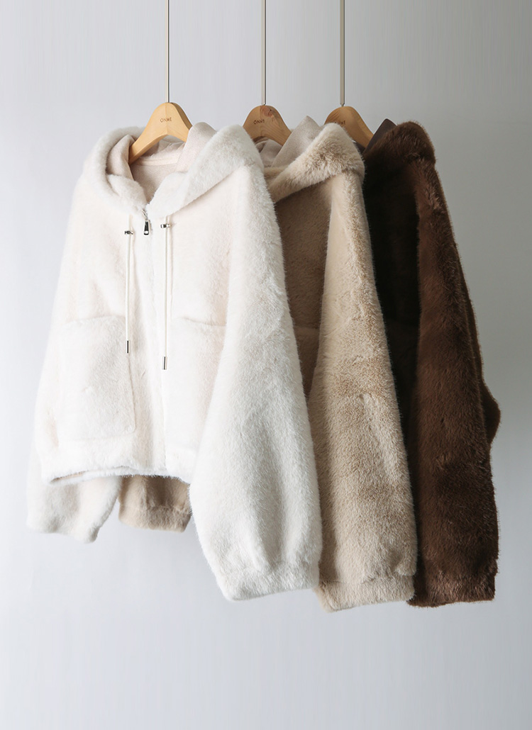 [Theonme] 젤로비 세미크롭 도톰 포근 후드 퍼 집업 자켓