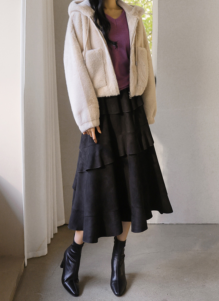 세미크롭 후드 퍼 집업 자켓이에요 :)