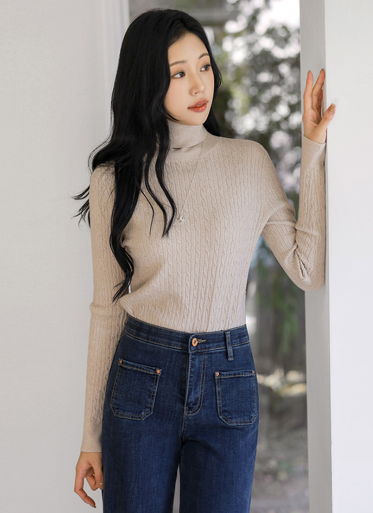 베이직한 꽈배기 패턴의 폴라넥 니트예요 :)
