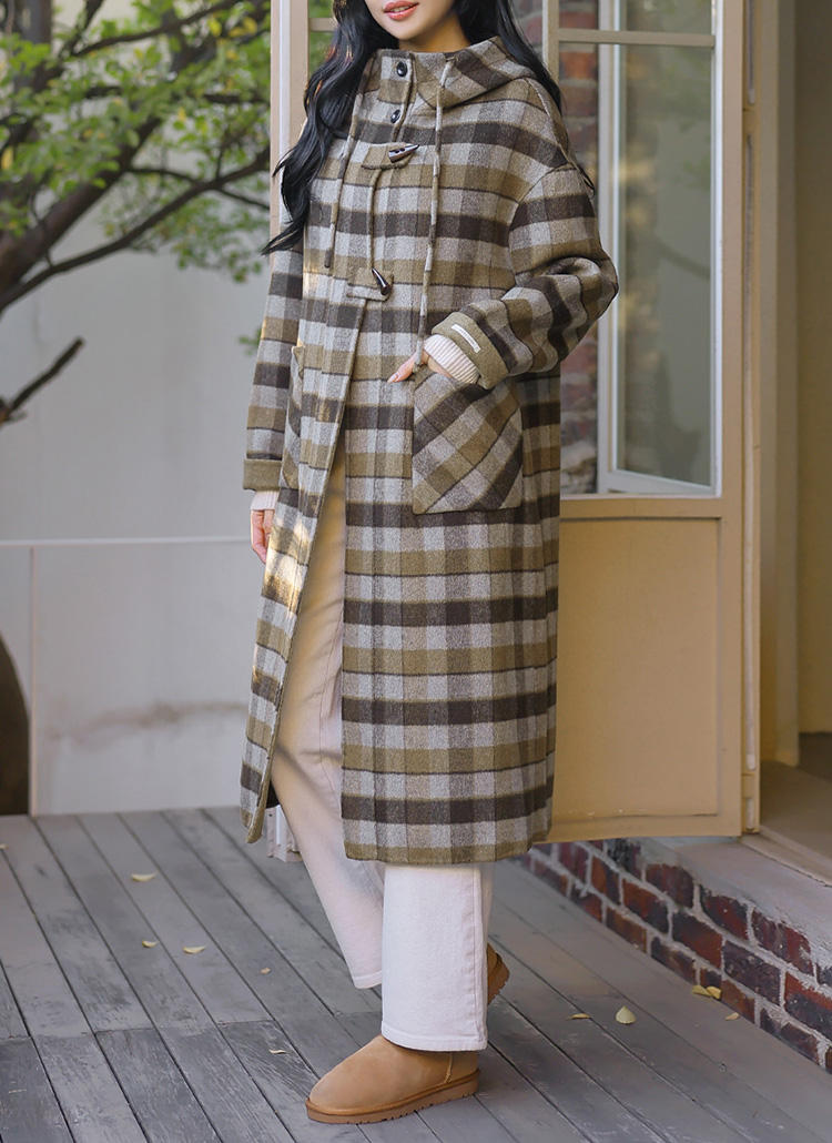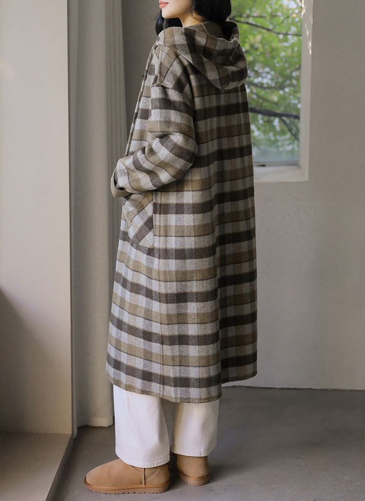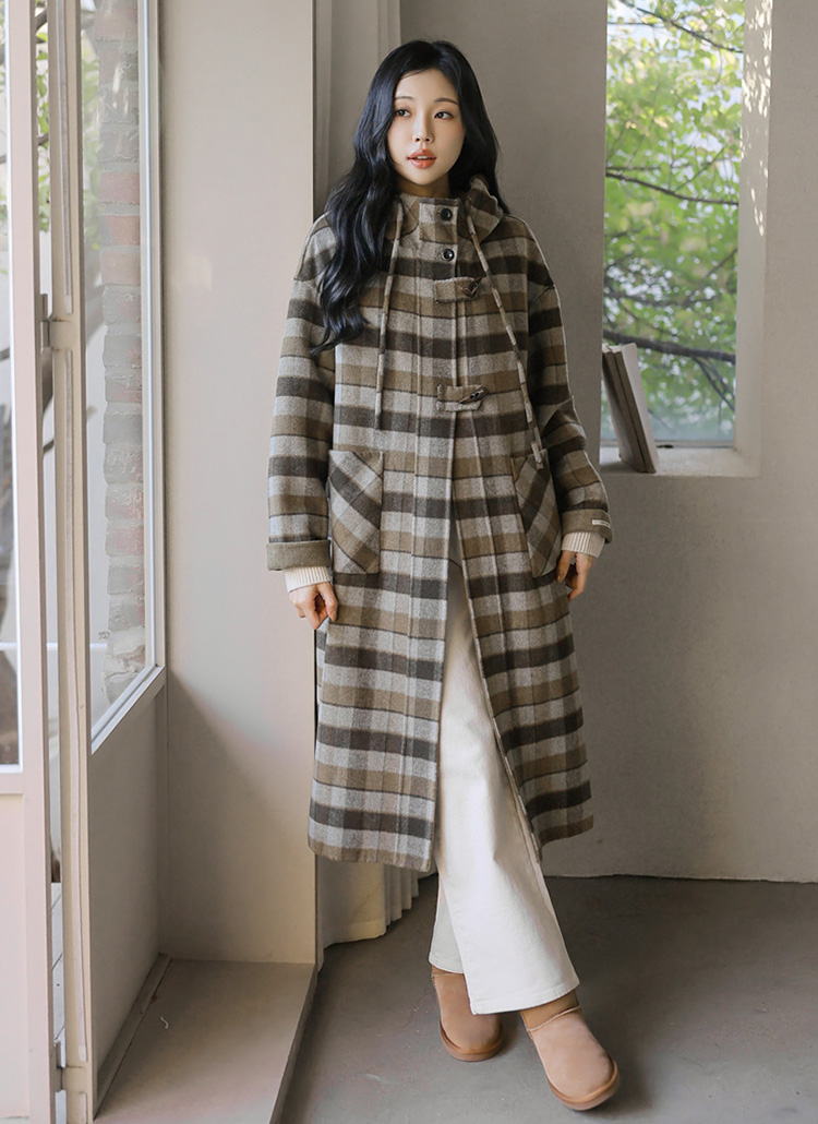 겨울 시즌 따뜻하게 착용하기 좋은 후드 체크 코트예요 :)