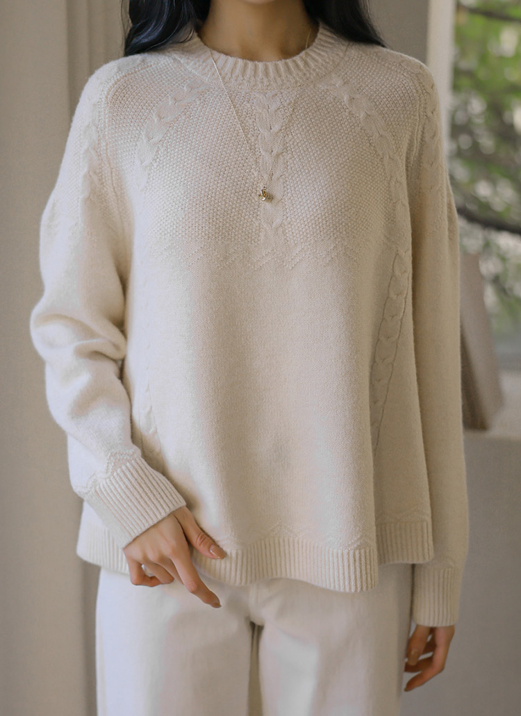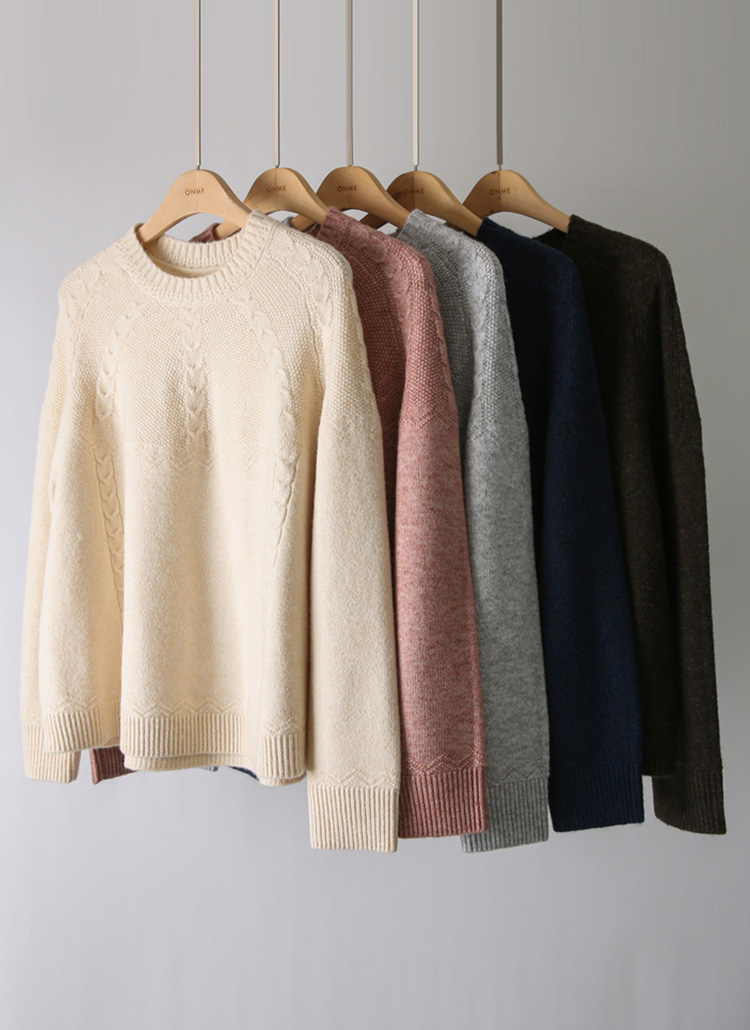 [Theonme] 블로피 꽈배기 루즈핏 나그랑 울 라운드 니트