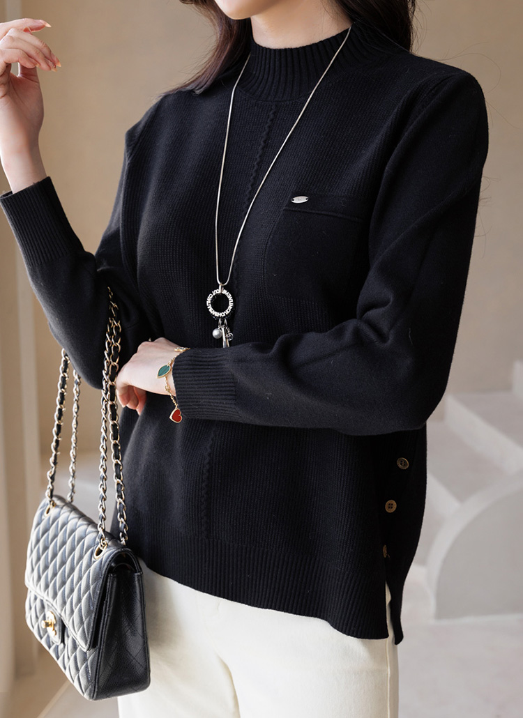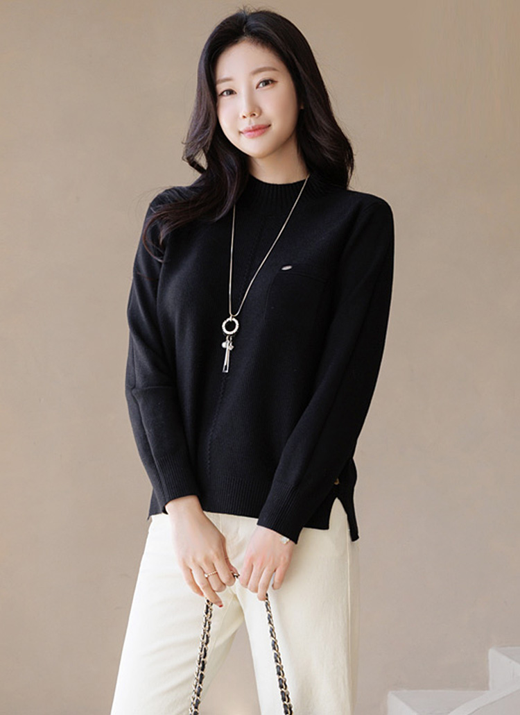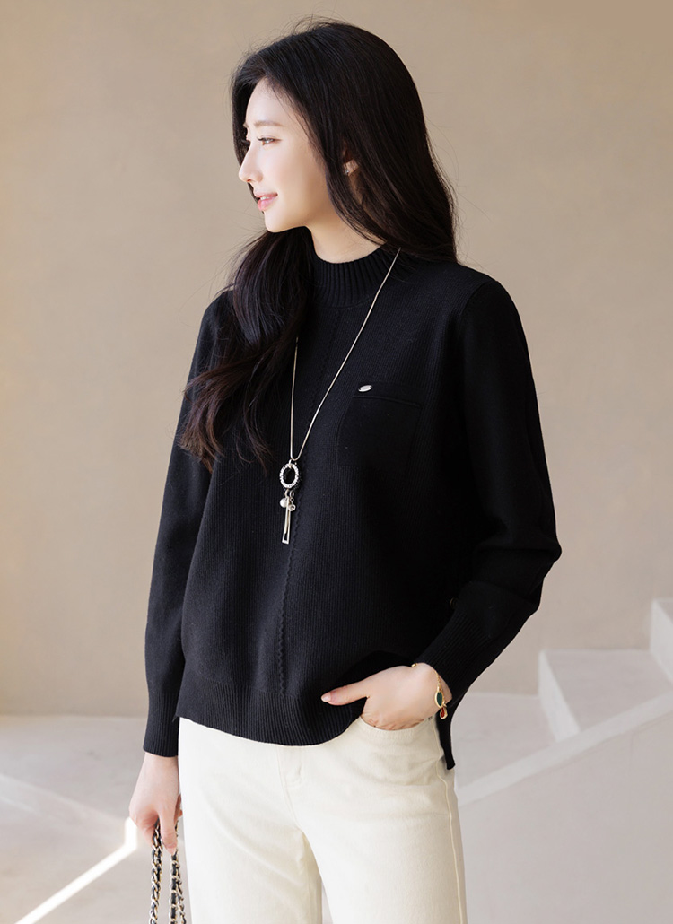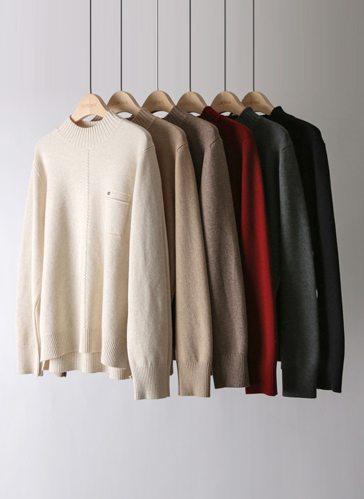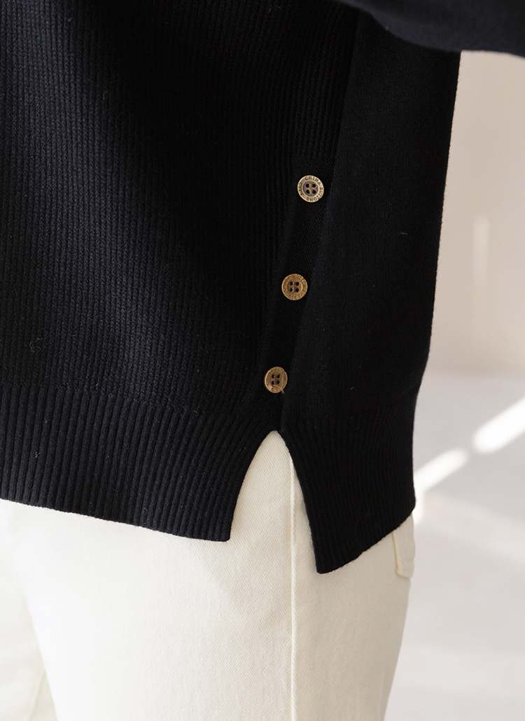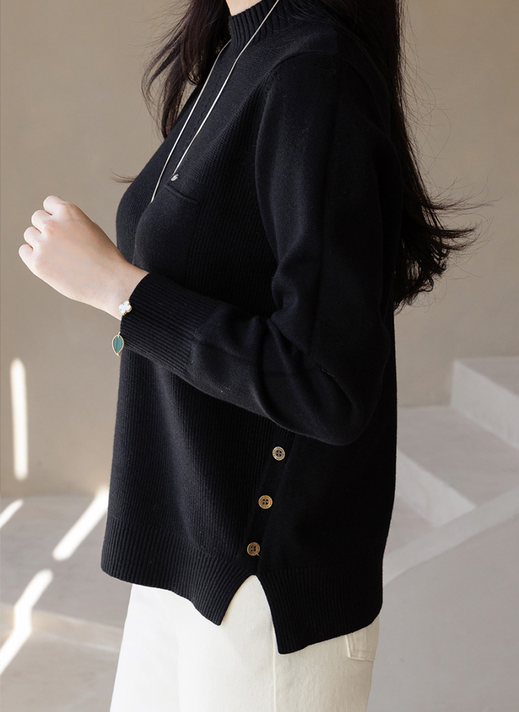 딜리브 옆 트임 버튼 디테일 세미 루즈핏 반하이넥 니트