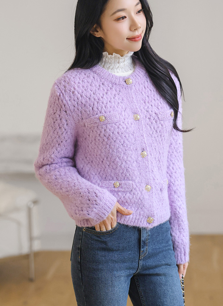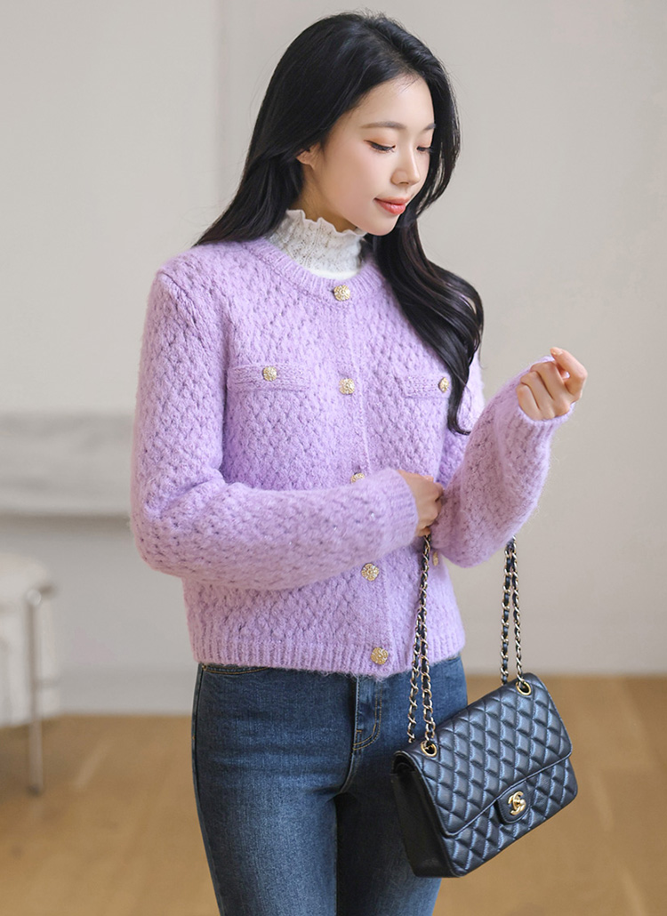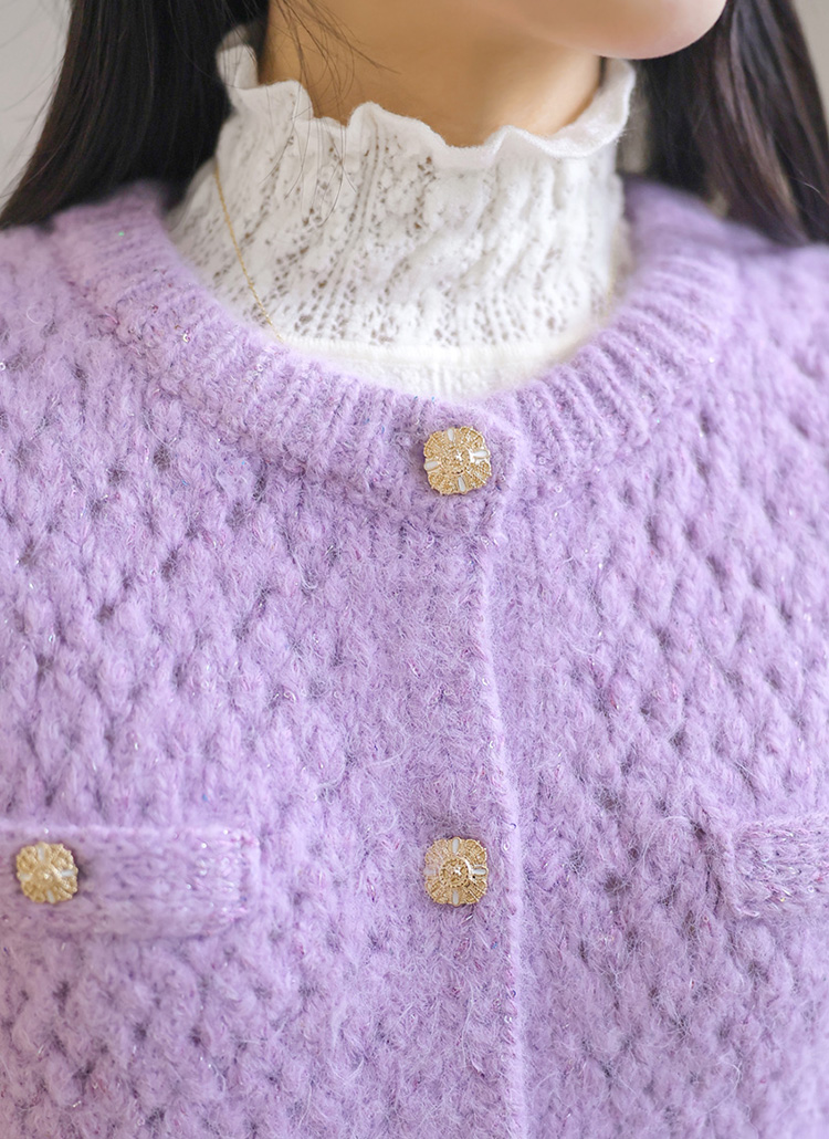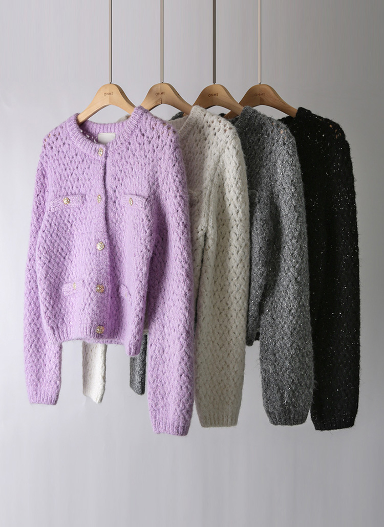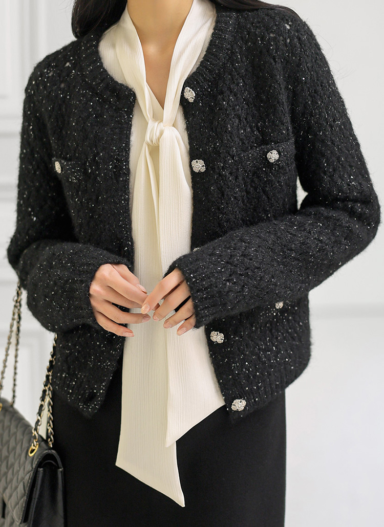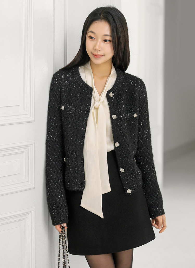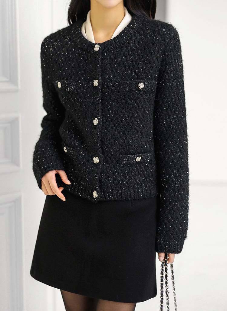 엘로이 해리울 스팽글 볼드버튼 탄탄짜임 니트 가디건 자켓