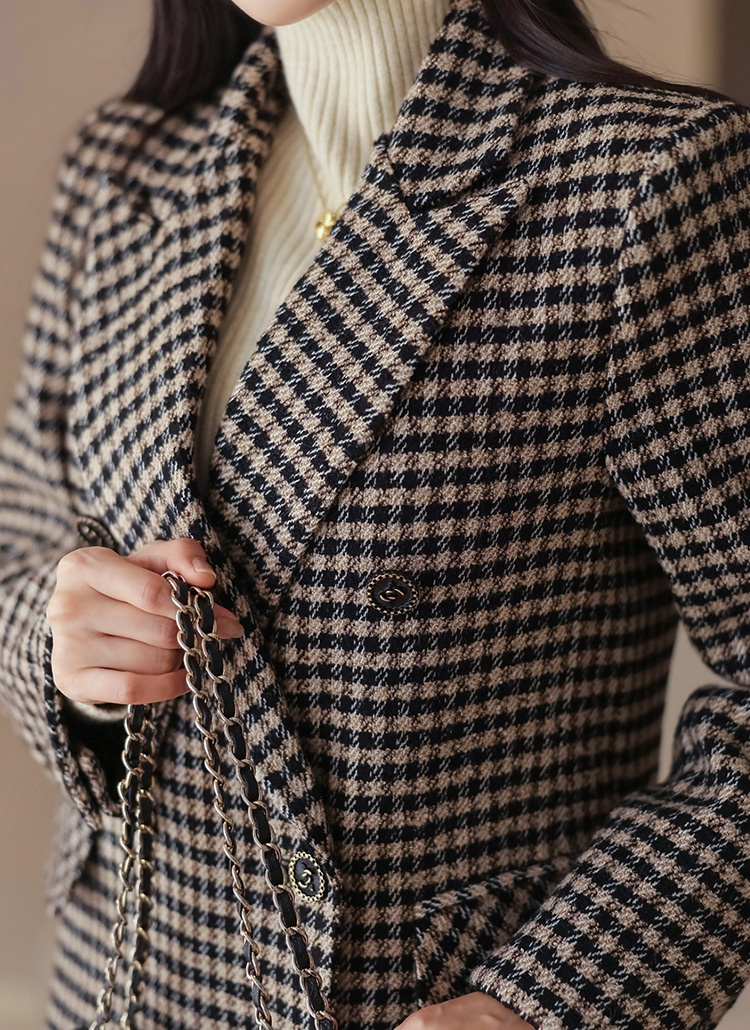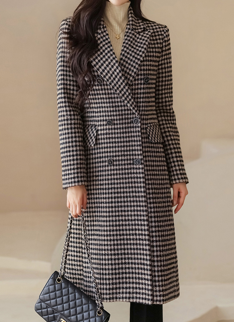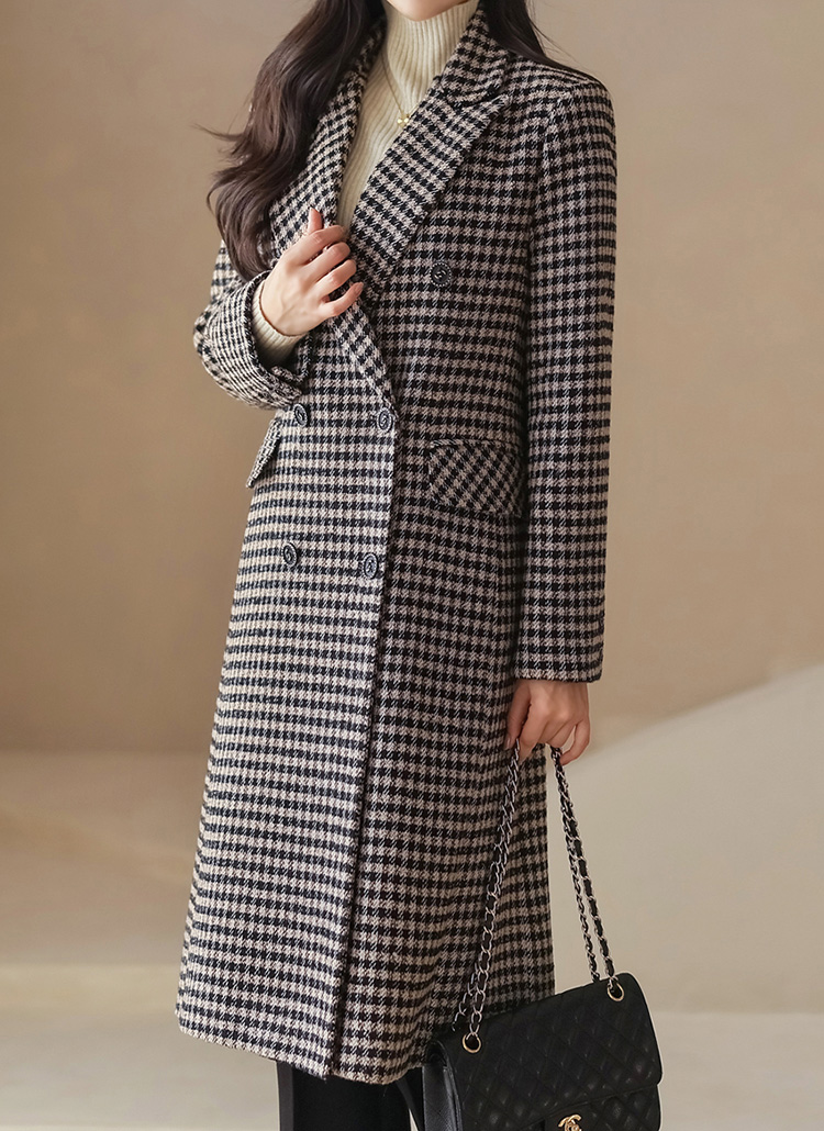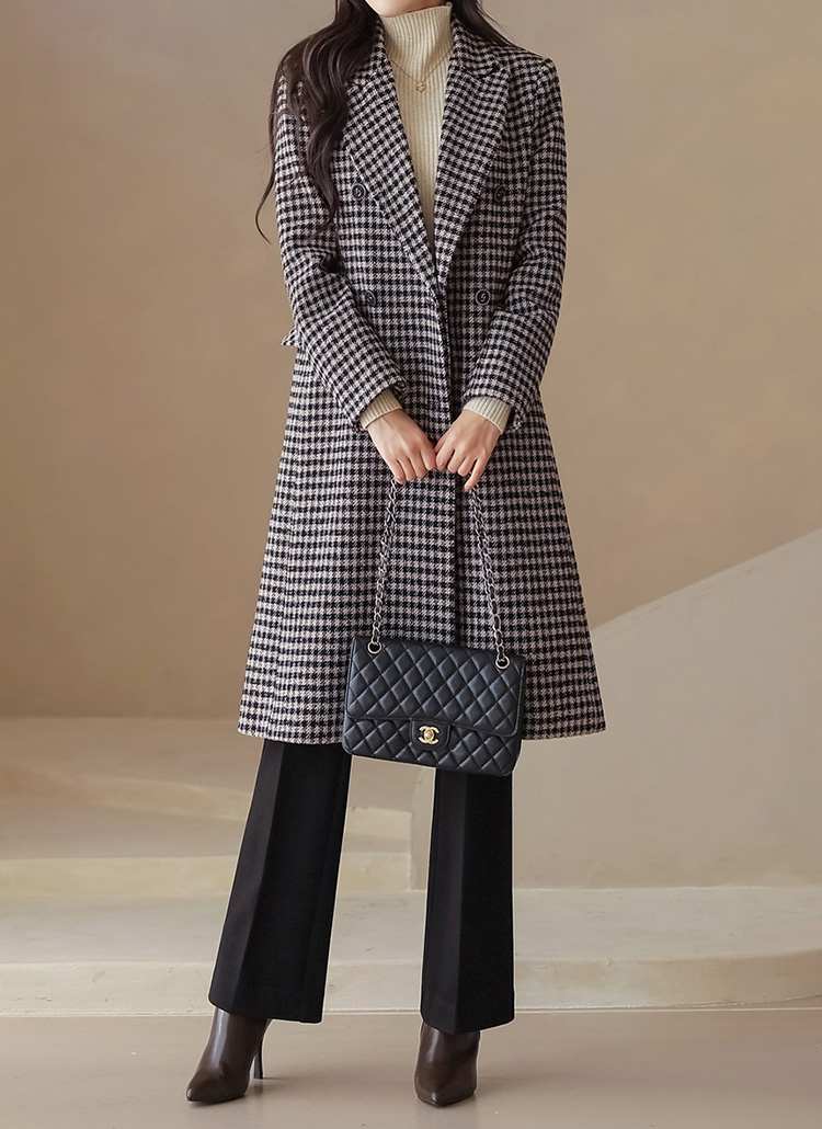 클래식한 무드가 아름답게 돋보이는 체크 롱 코트에요