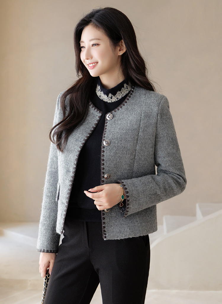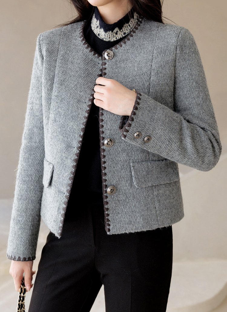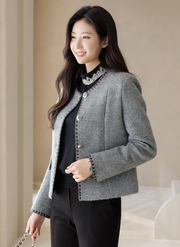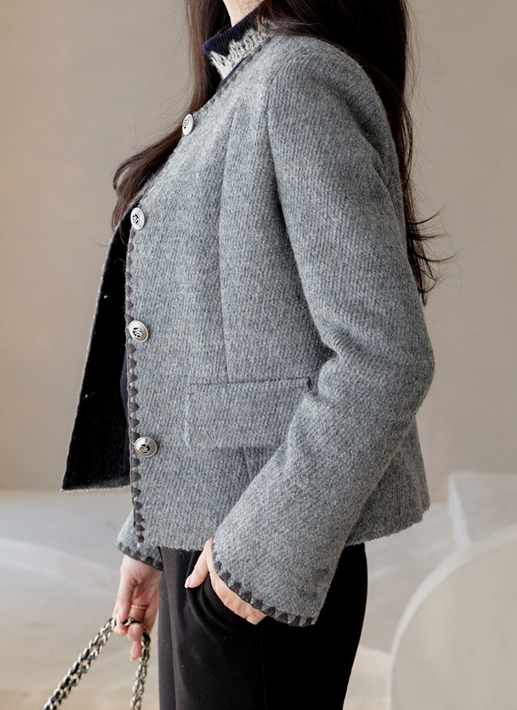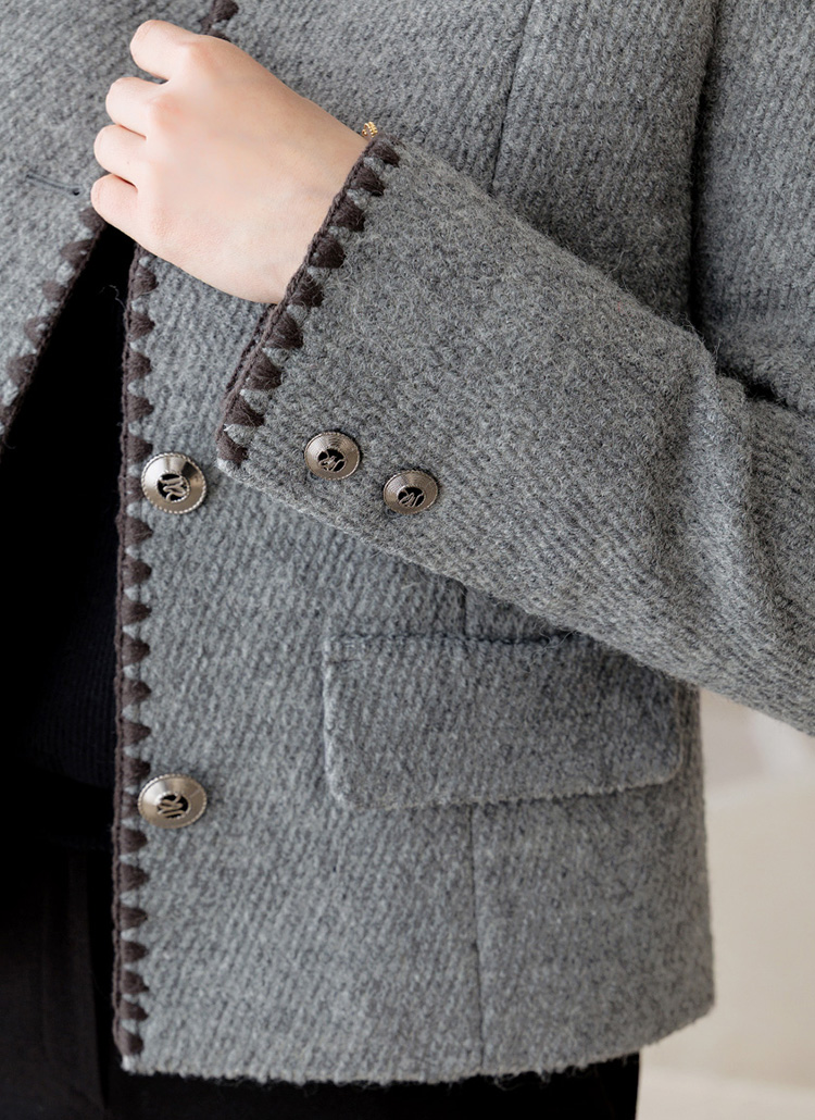 헤부티 울 블렌딩 고퀄 자수 디테일 누빔 안감 노카라 자켓