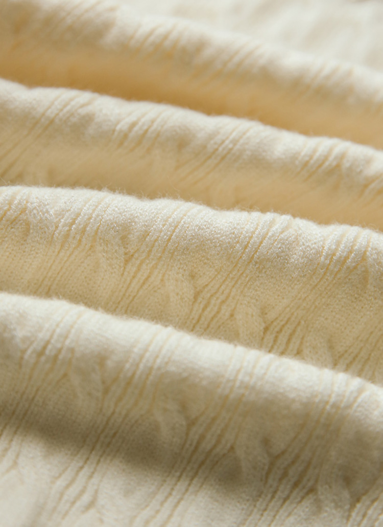 가디건 부분은 고급스러운 꽈배기 재직감으로 짜여