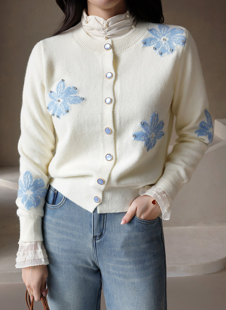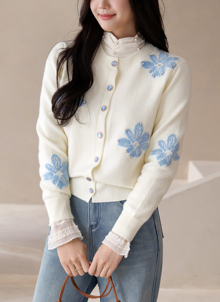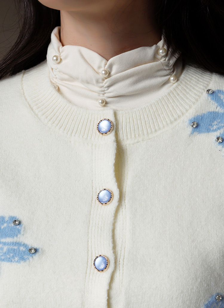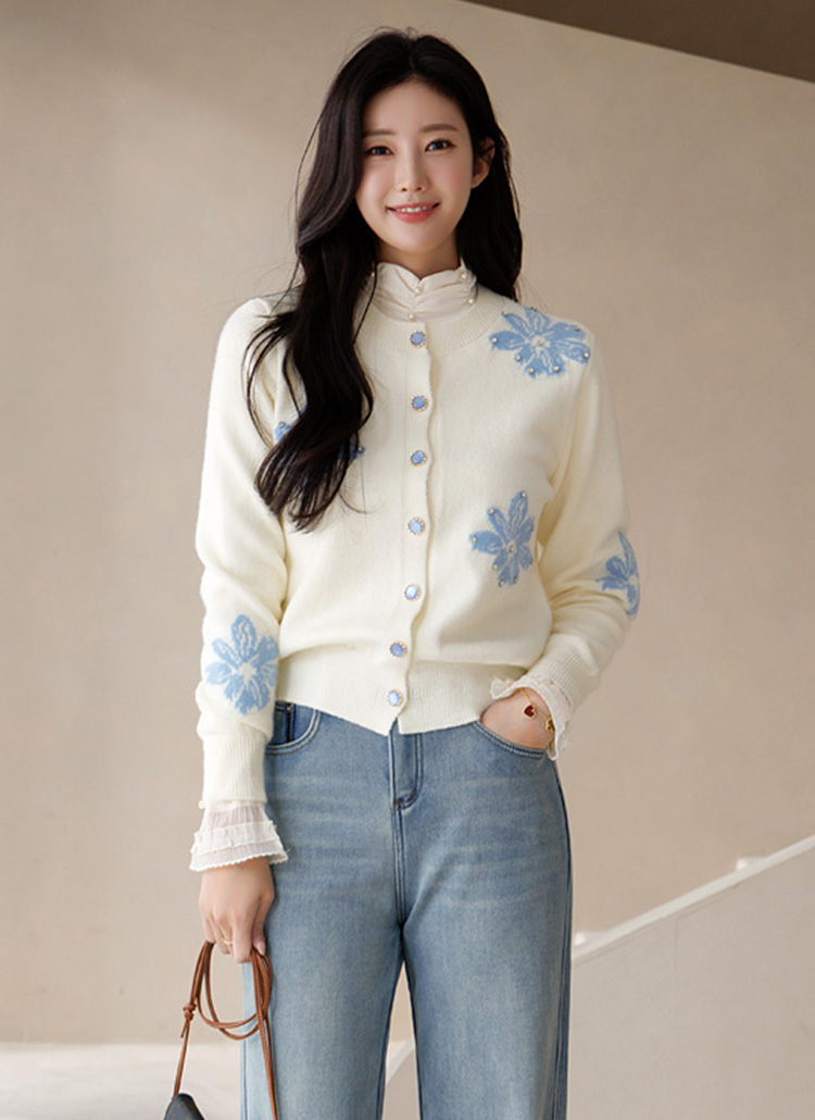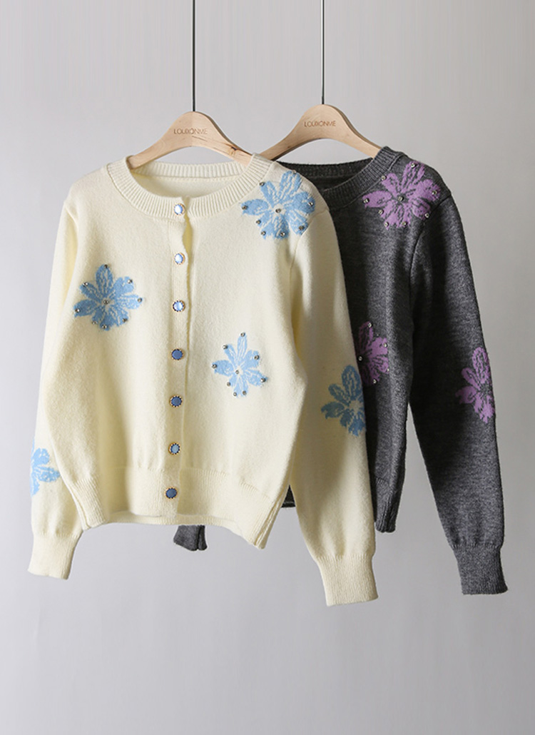 로이텐 스노우 쥬얼 플라워 샤인 버튼 니트 가디건