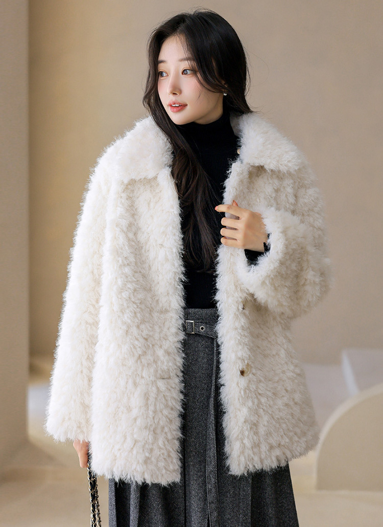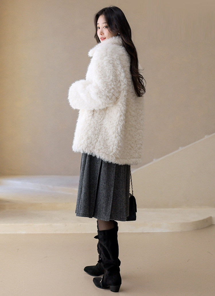 메이엔 울 80 블렌딩 뽀글 양털 카라 퍼 하프 코트