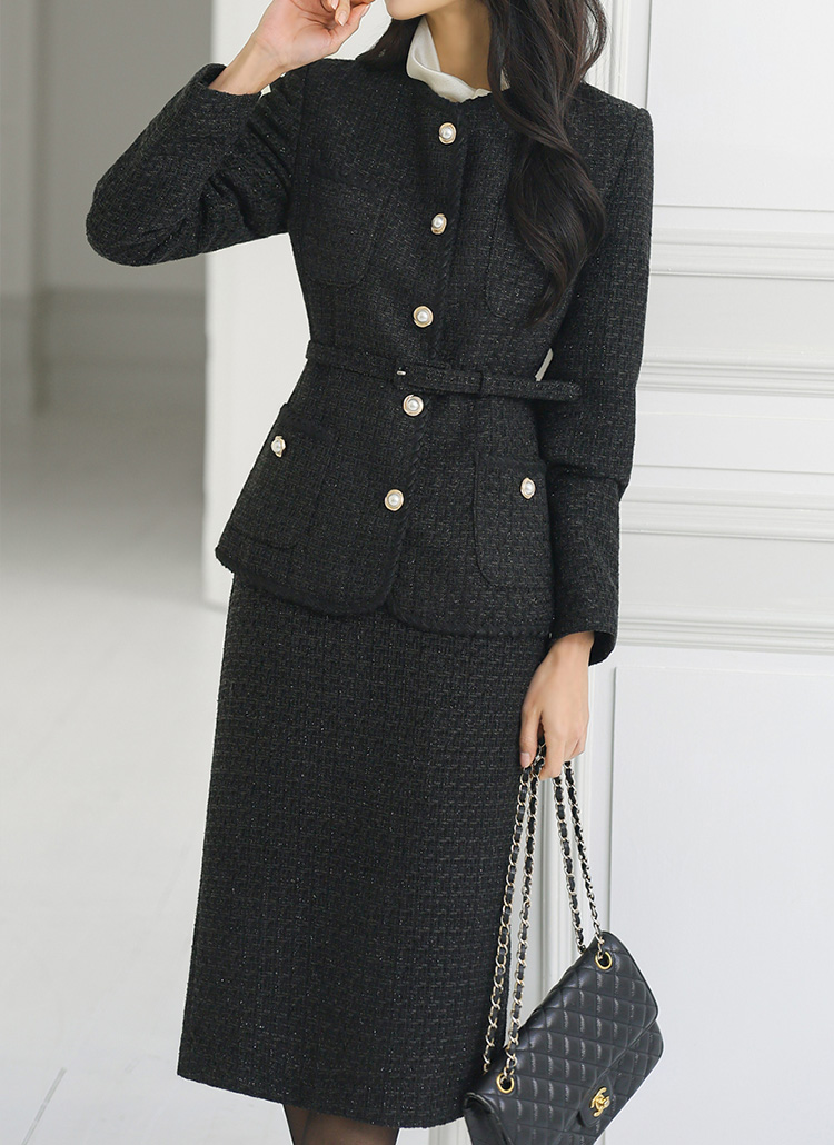 니켈로 벨트set 진주 버튼 펄 블렌딩 트위드 자켓