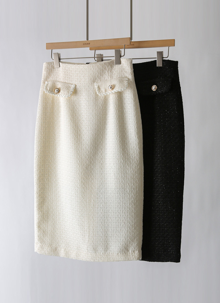 니켈로 진주 포켓 펄 블렌딩 트위드 H라인 스커트