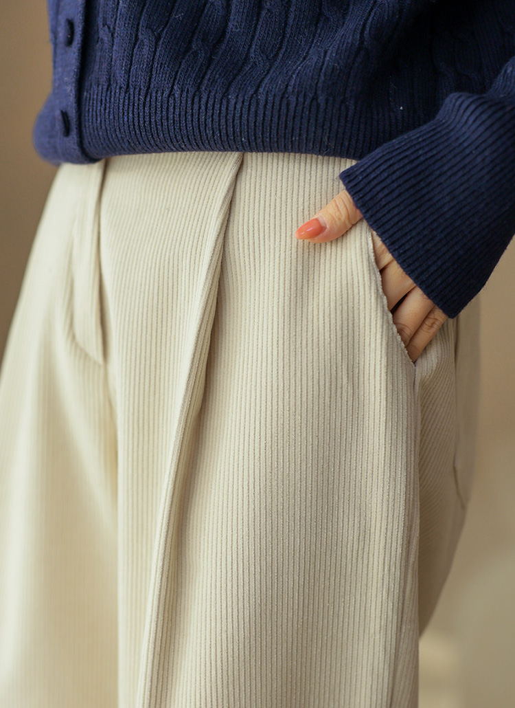 로디나 원턱 세미 와이드 도톰 포근 코듀로이 슬랙스 팬츠