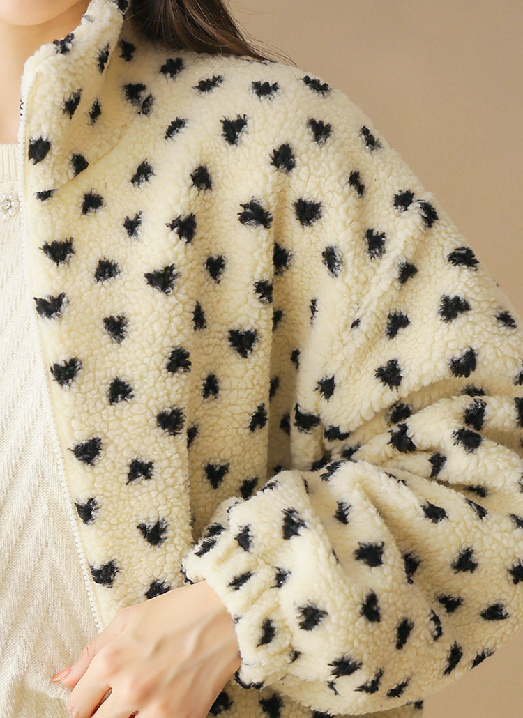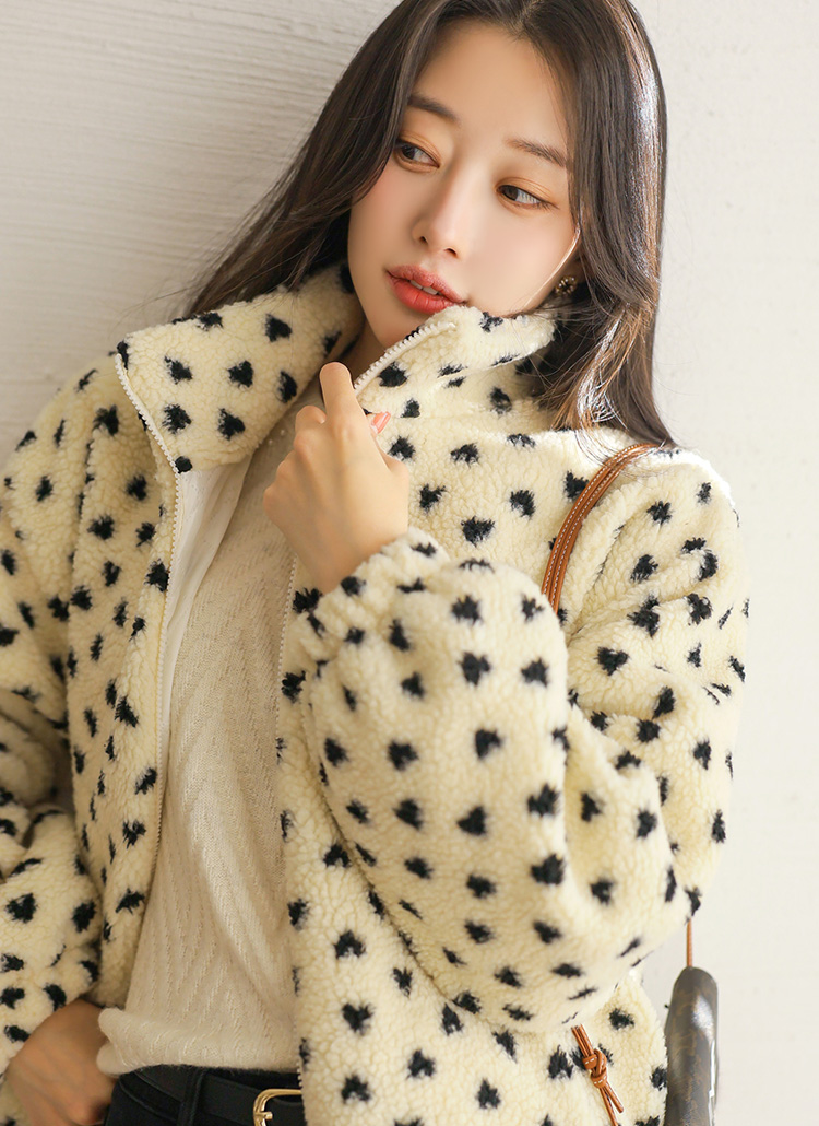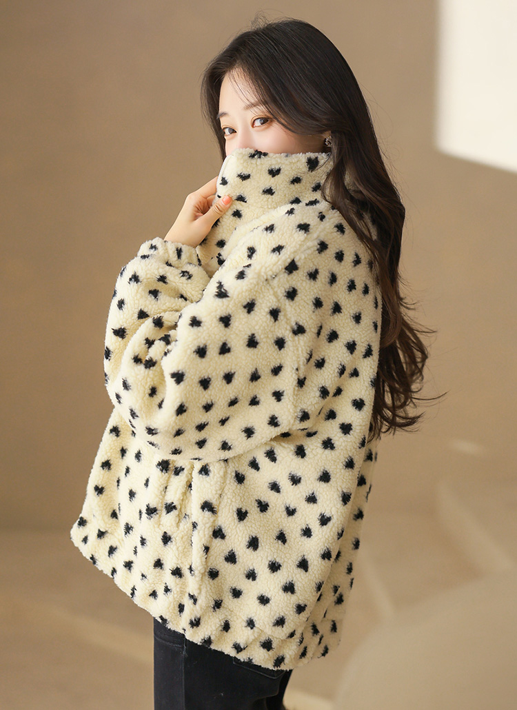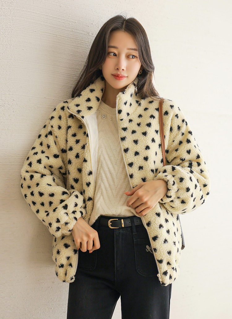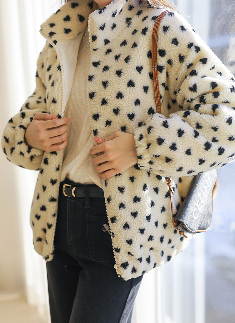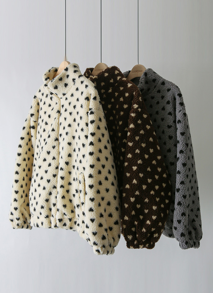 하트 패턴 뽀글 양털 후리스 집업이에요