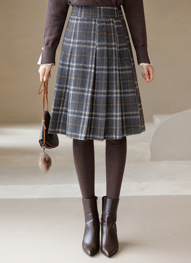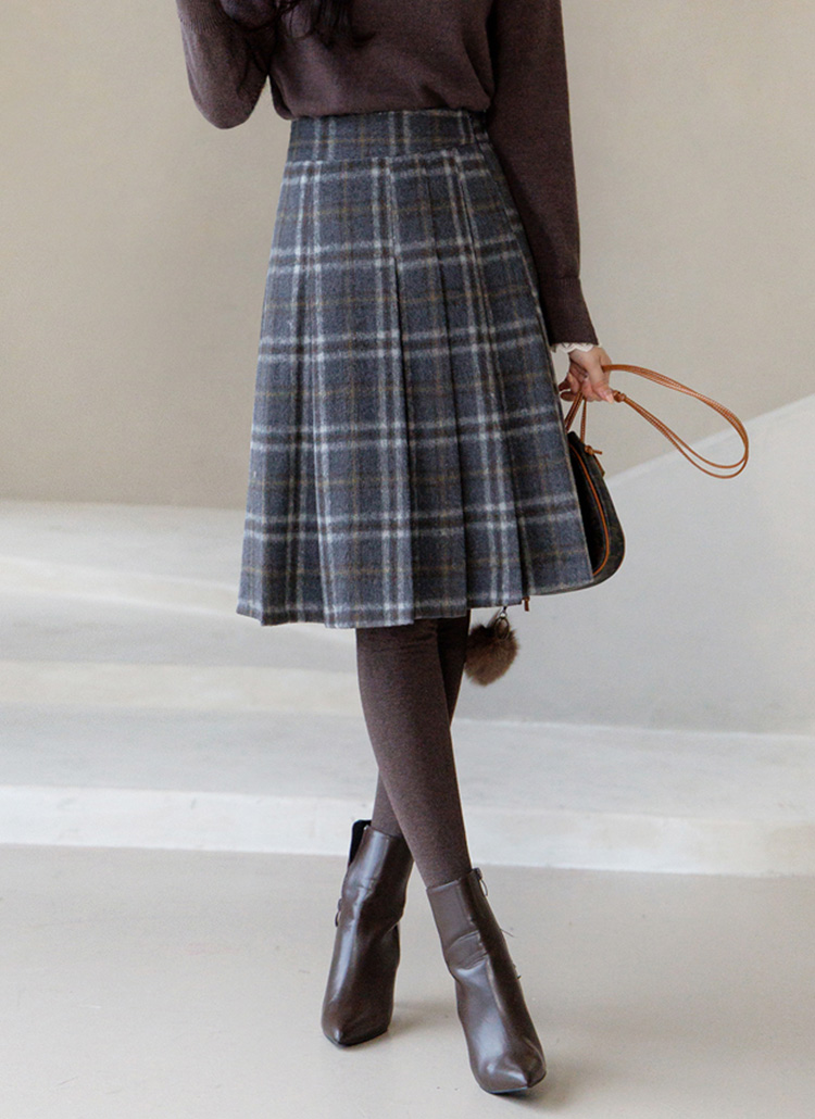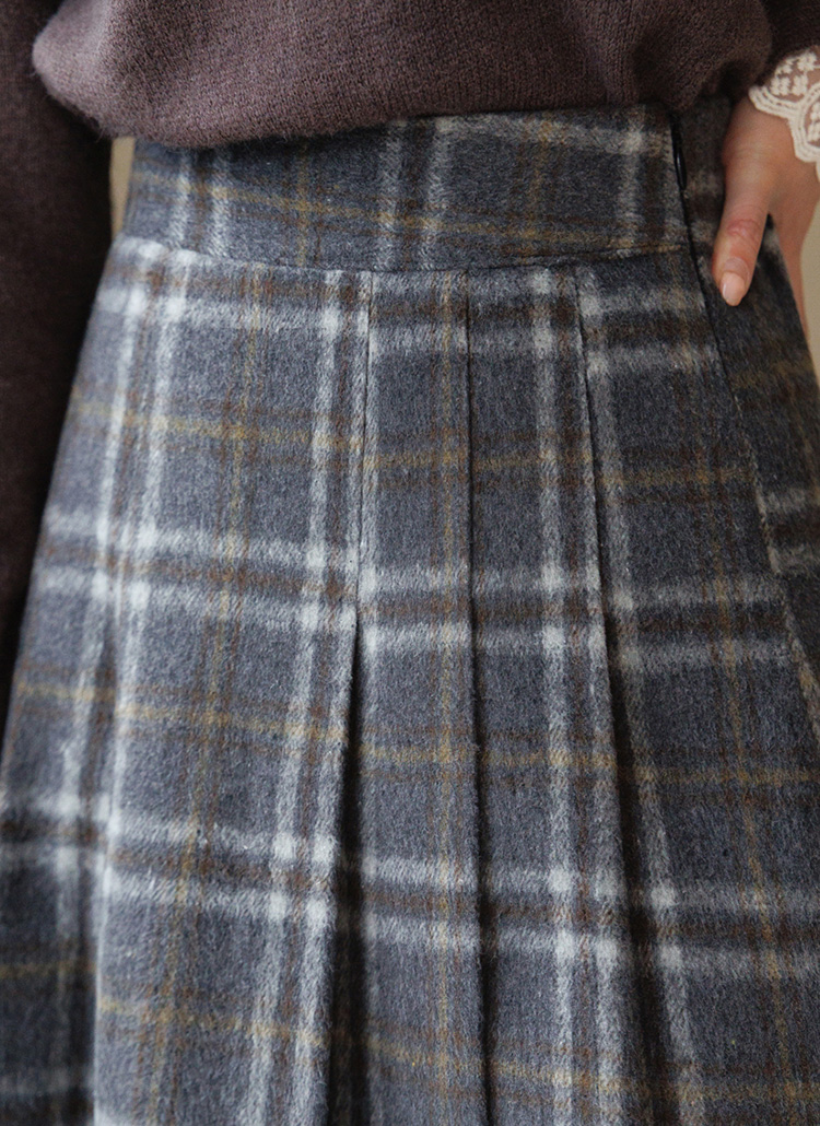 데바즈 백 밴딩 도톰 포근 핀턱 플리츠 A라인 미디 스커트