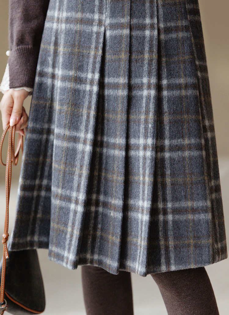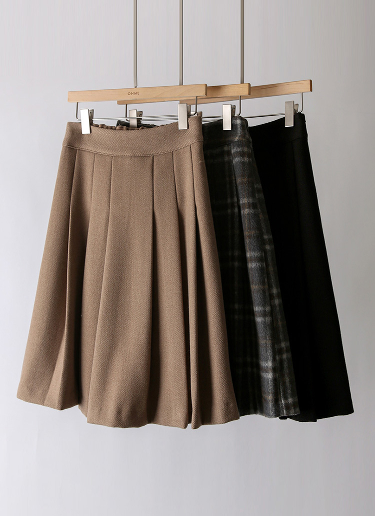 데바즈 백 밴딩 도톰 포근 핀턱 플리츠 A라인 미디 스커트