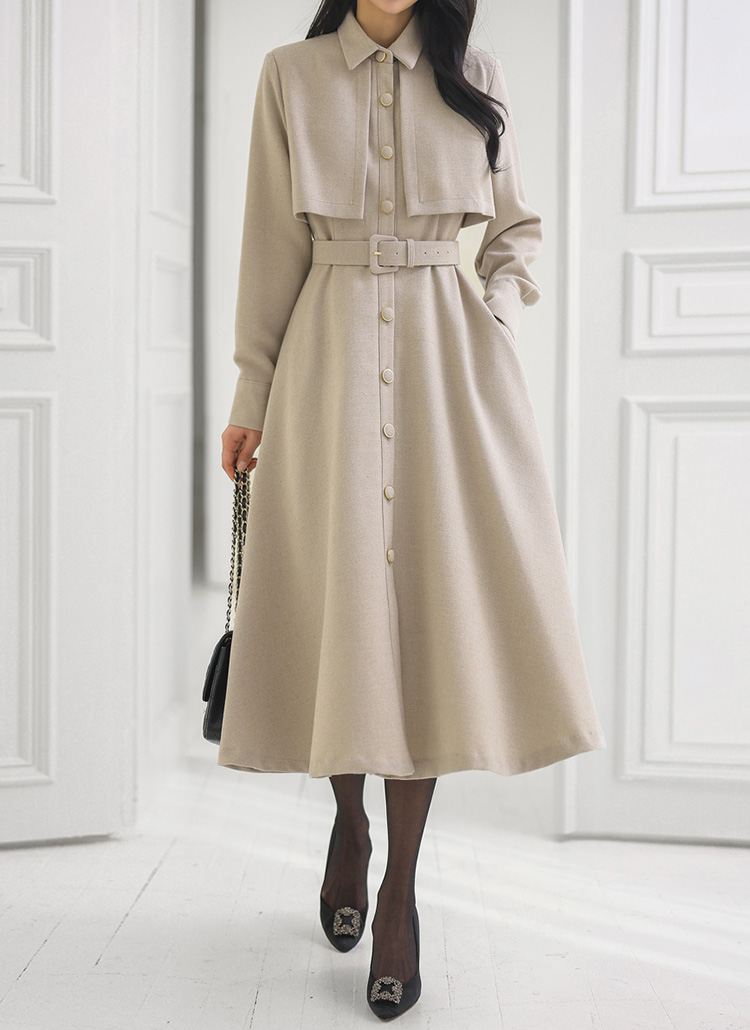 브리올 포근 비스코스 트렌치 벨트set 셔츠 원피스