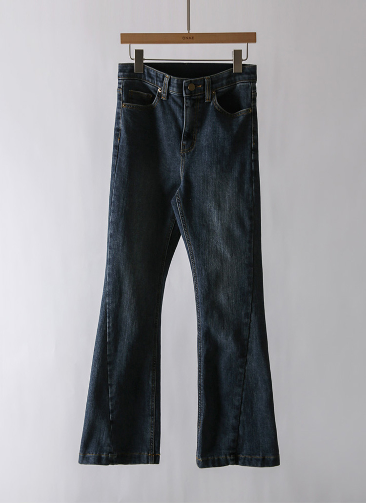 온디브 사선 절개라인 기모 부츠컷 데님 팬츠