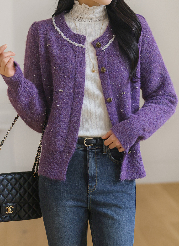 화사하면서도 고급스러운 무드를 연출해주는 니트 가디건이에요 :)